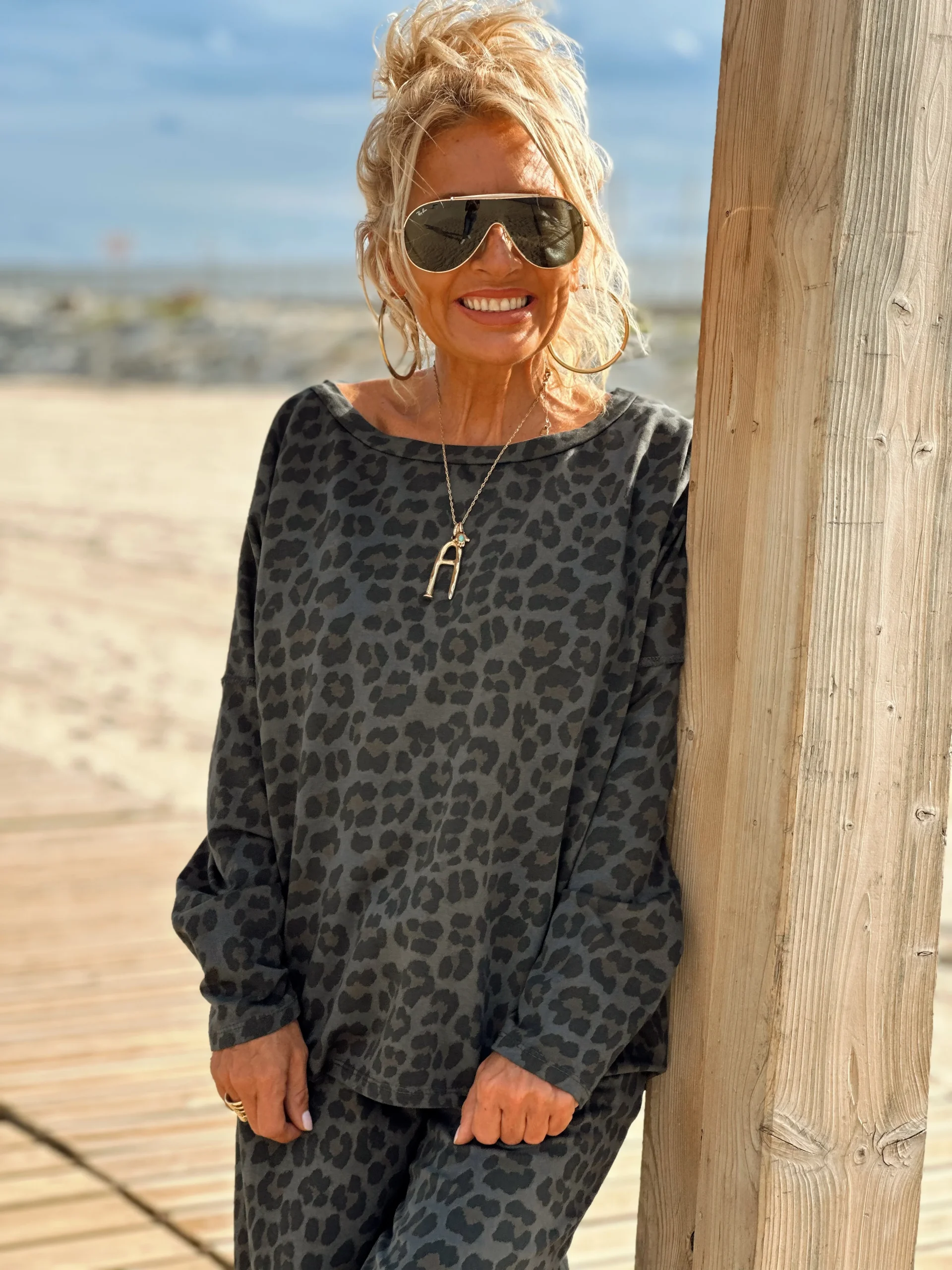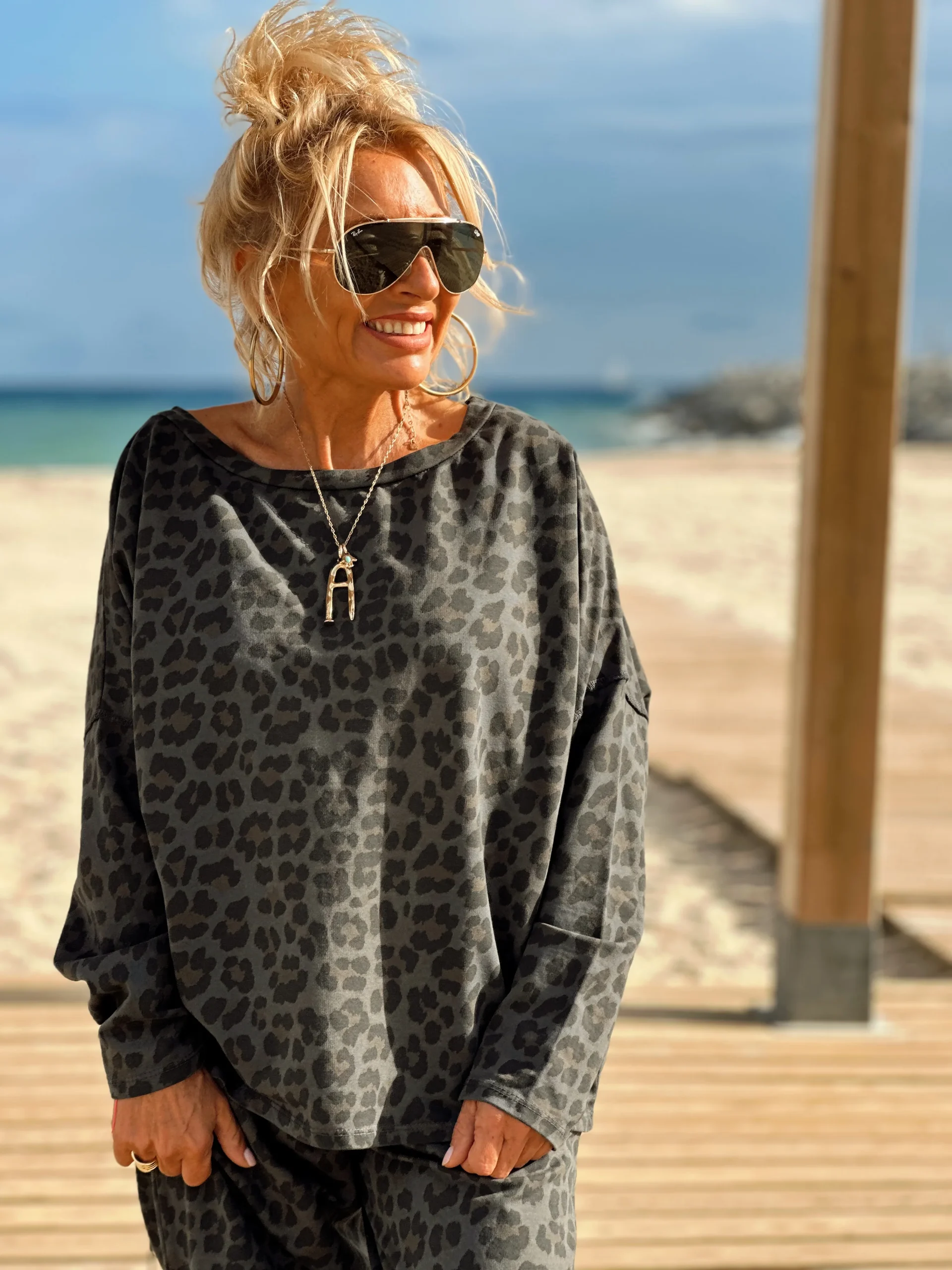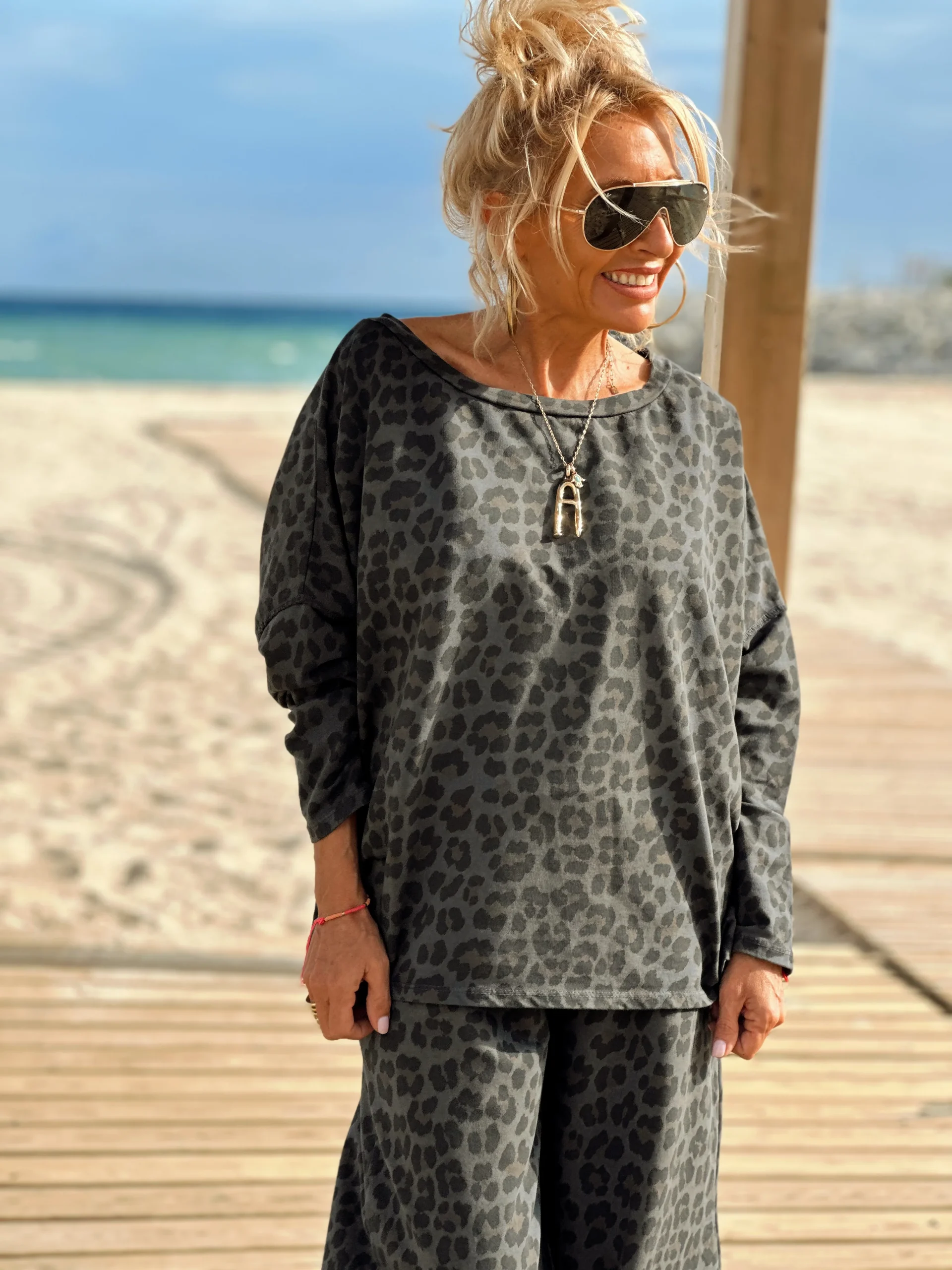 Este conjunto con pantalón/sweat en animal PRINT es simplemente magnífico, muy a la moda esta temporada. Es muy cómodo de llevar tanto con botas como con sneakers. ✨