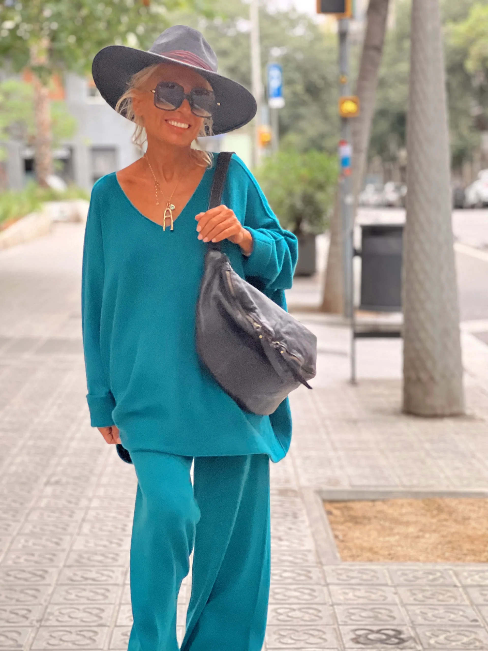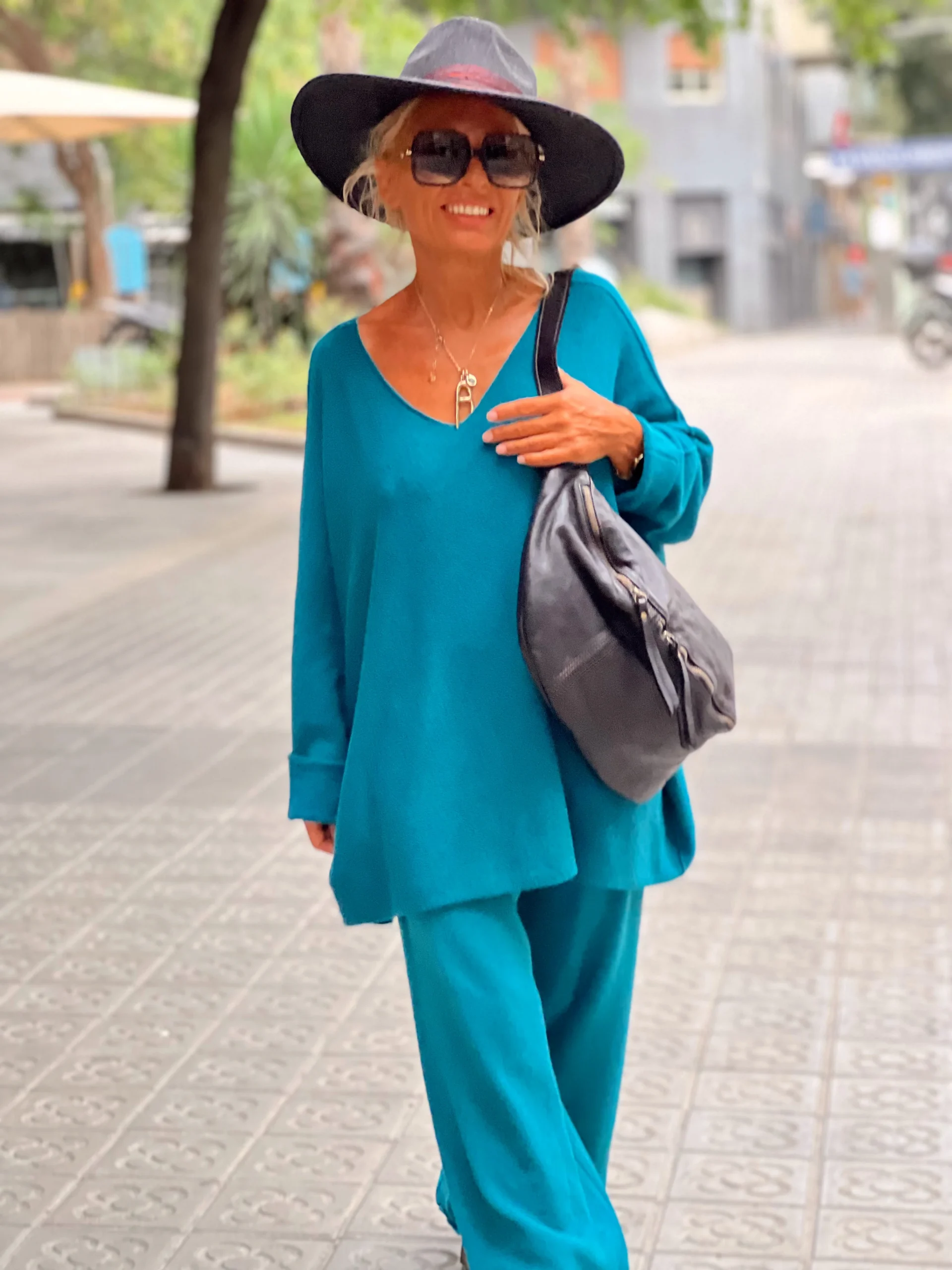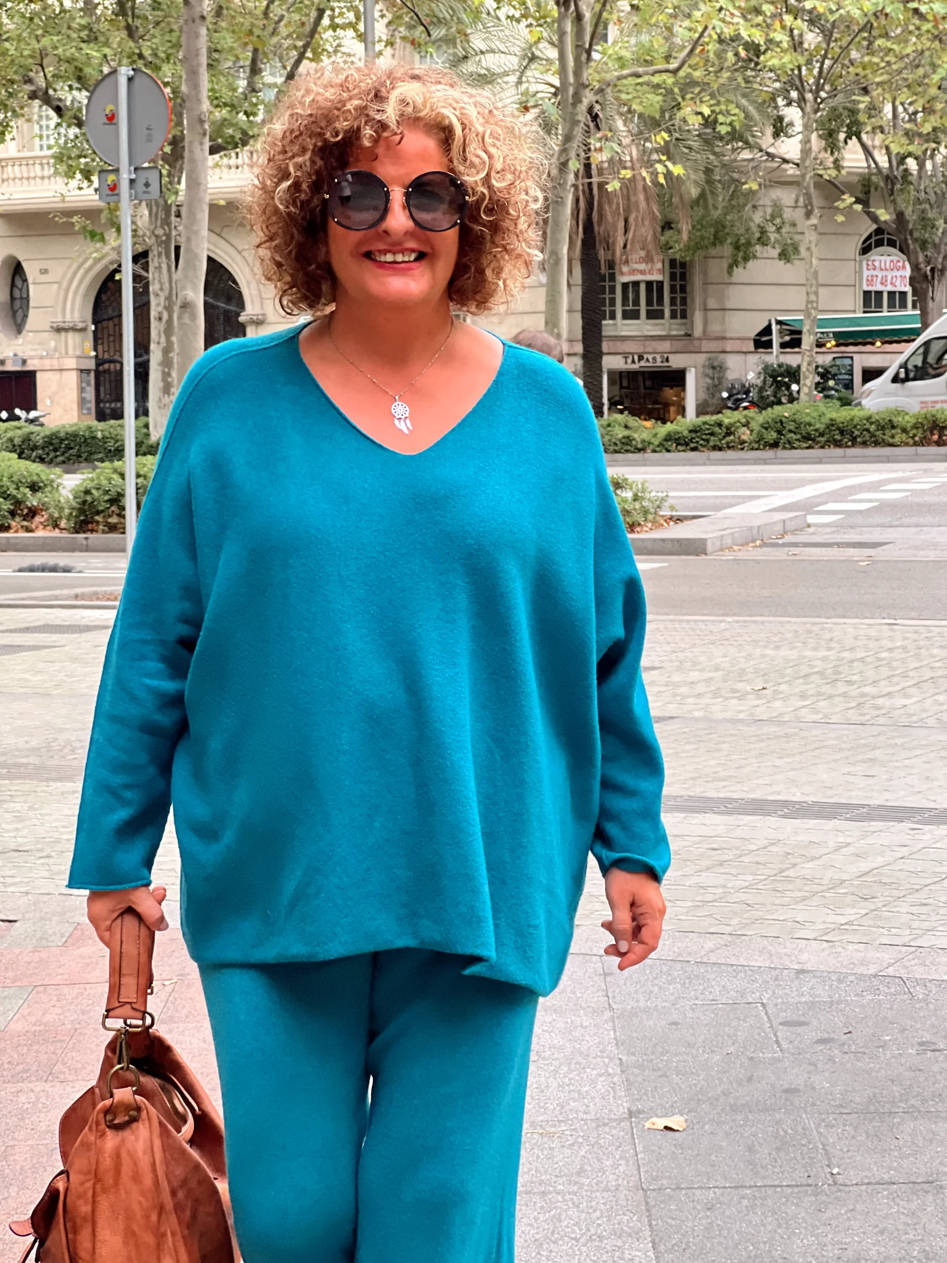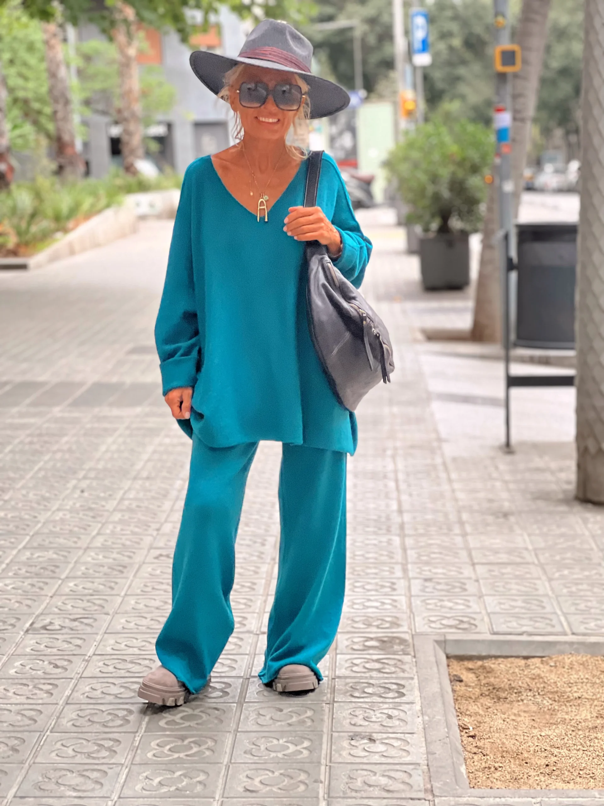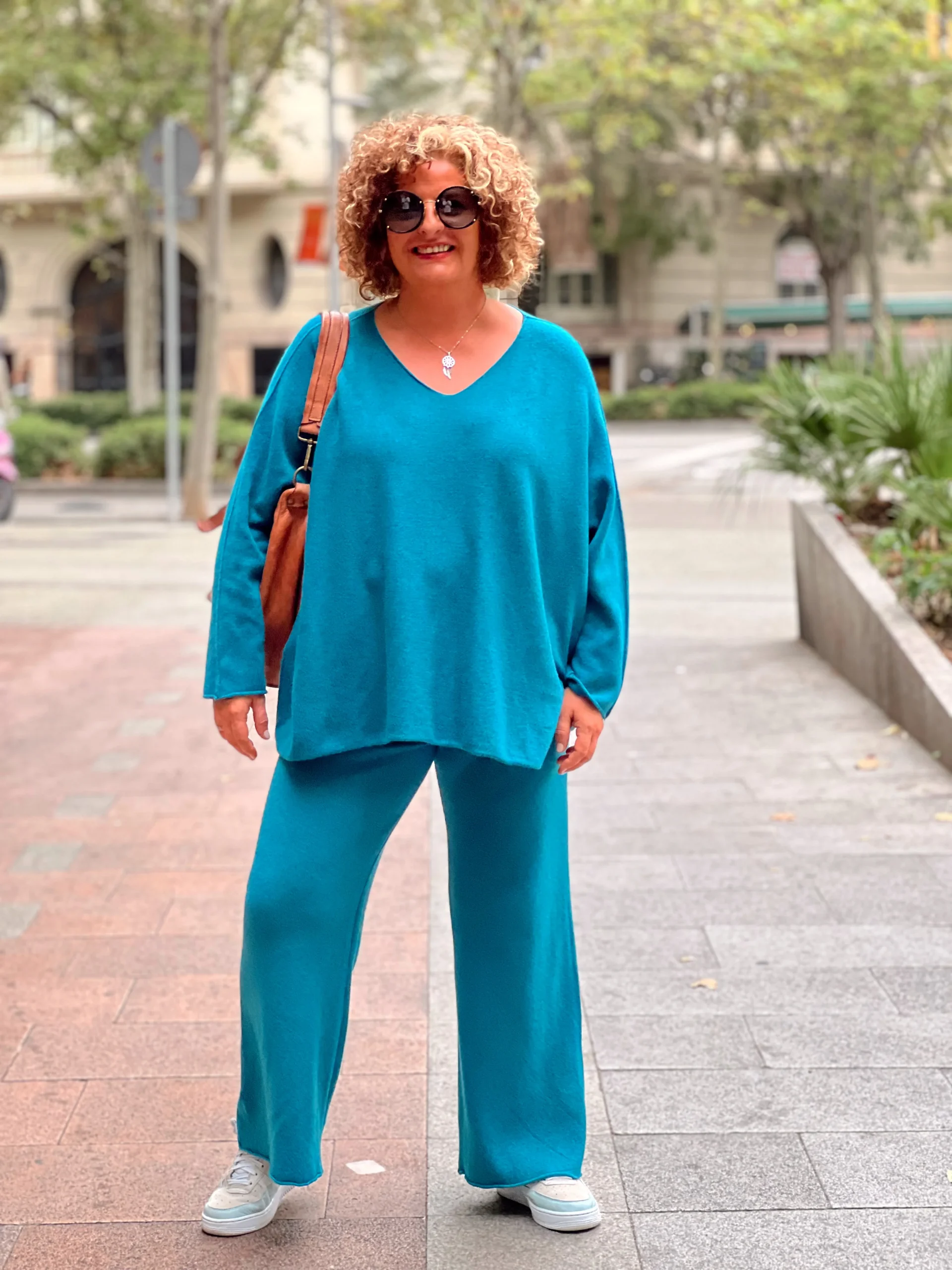 CONJUNTO JERSER-PANTALON DE PUNTO VALENTÍA TURQUESA