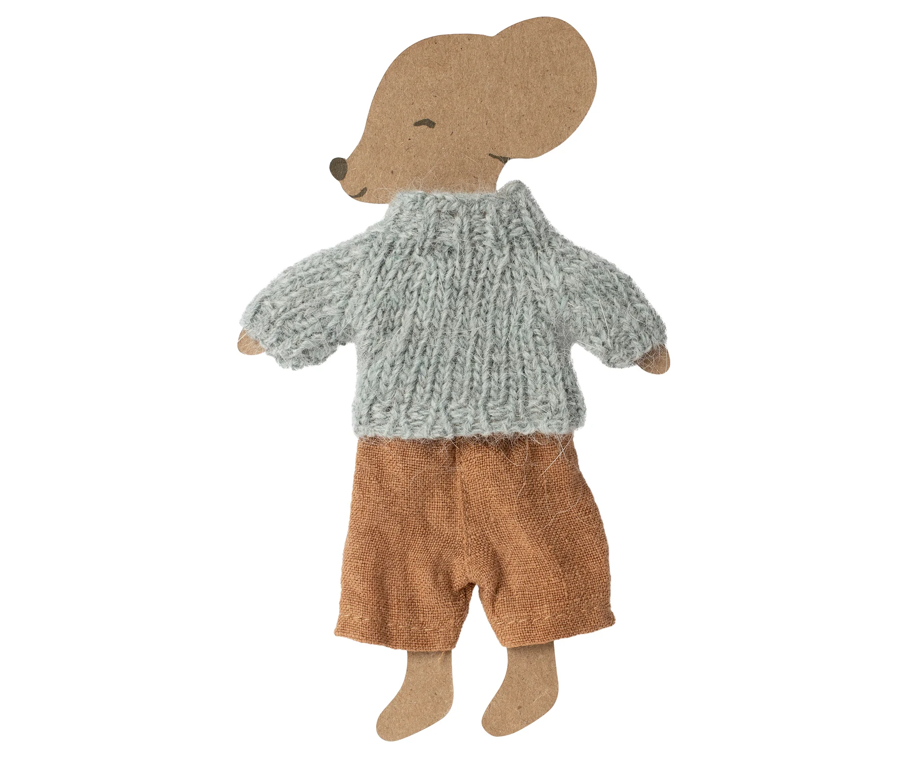 Un conjunto de suéter y pantalón muy cómodo e ideal para un ajetreado día de juegos y estudio (ratoncito no incluida)