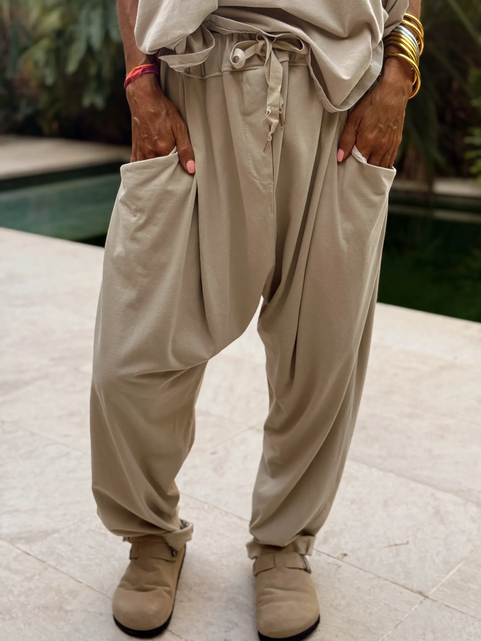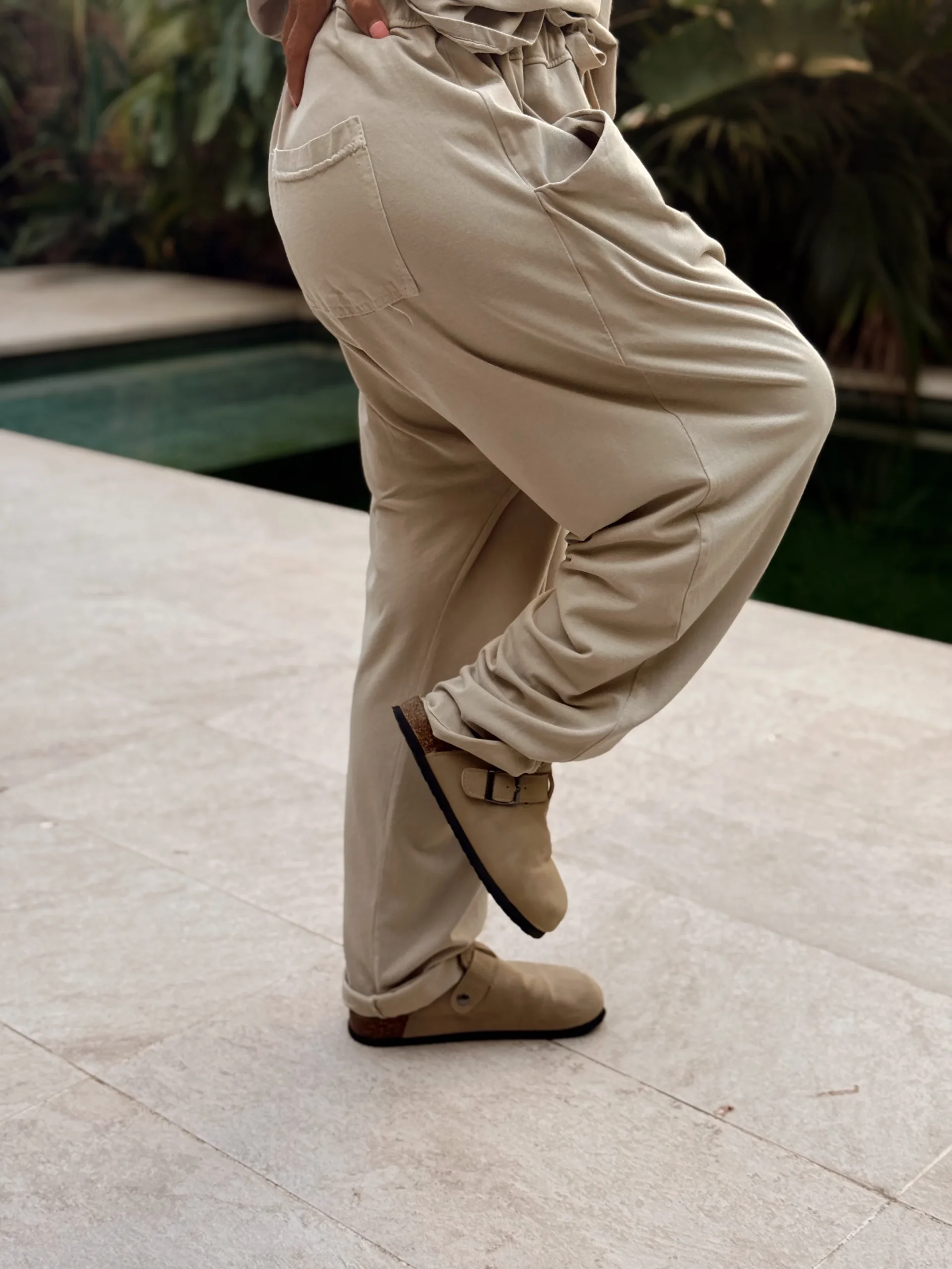 Este top con escote en V, tanto por delante como por detrás, es una joya. Combinado con este pantalón baggy de corte oversize, cómodo y con mucho estilo, ¡forma el conjunto perfecto!