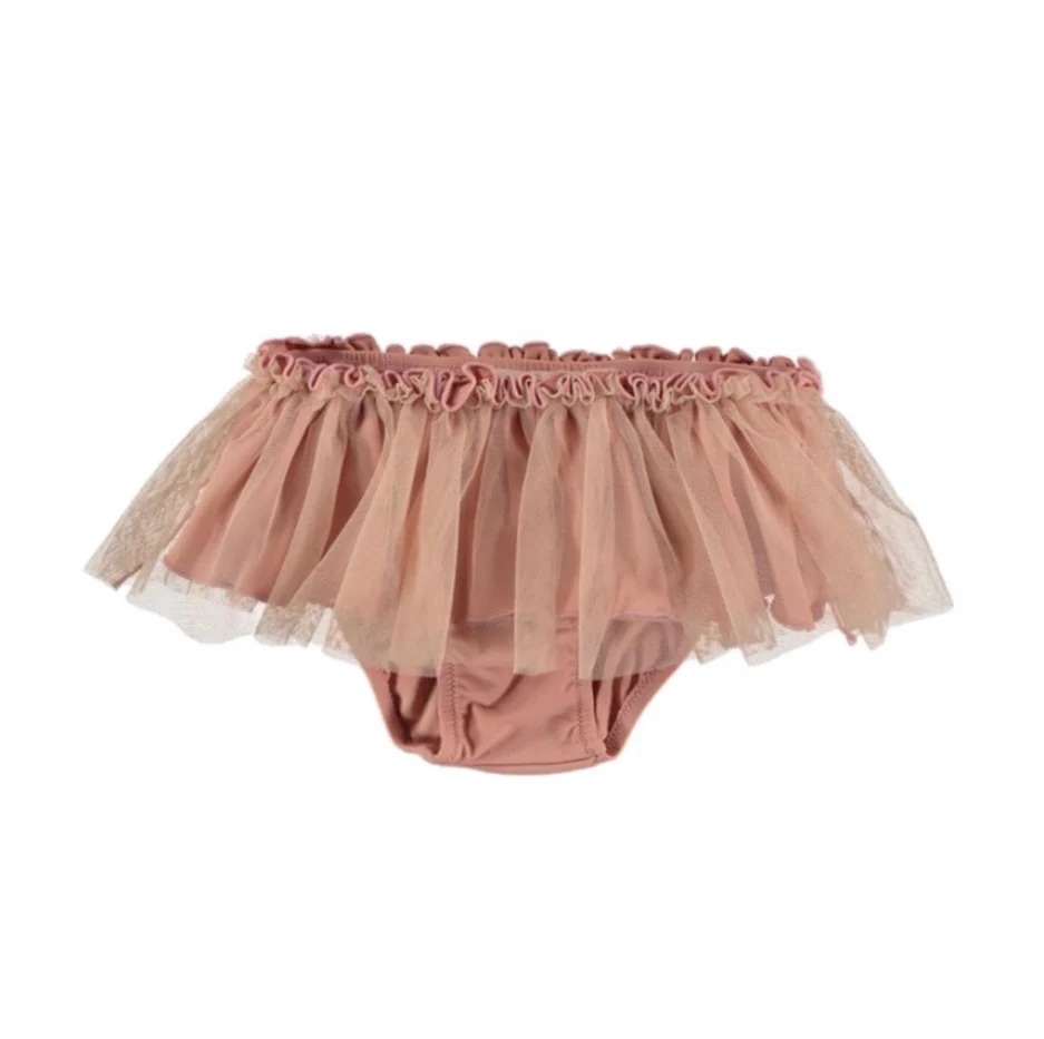 El sueño de cualquier pequeña bailarina: llevarse el tutú hasta a la playa. Pero no os dejéis engañar por el glamour y delicadeza de esta pieza de baño , realmente está pensado para para funcionar como ropa de baño. Su lycra es muy agradable y resistente e incluso en el agua mantiene su delicadeza.