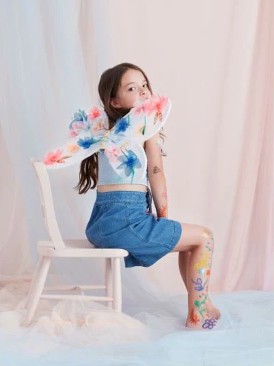 Extiende tus alas y sé una bonita mariposa con este delicioso disfraz hecho en apliques de tul de colores.