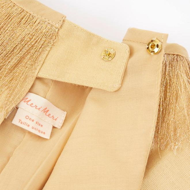 Roar! Vestirse como el rey de la selva puede ser fantásticamente divertido. Una sensacional capa y tocado para la cabeza hacen un kit muy especial. La capa presenta flecos dorados, zarpas bordadas y una magnifica cola. La pieza para la cabeza presenta ojos y nariz bordados, bigotes dorados y una cinta elástica para ajustarlo.