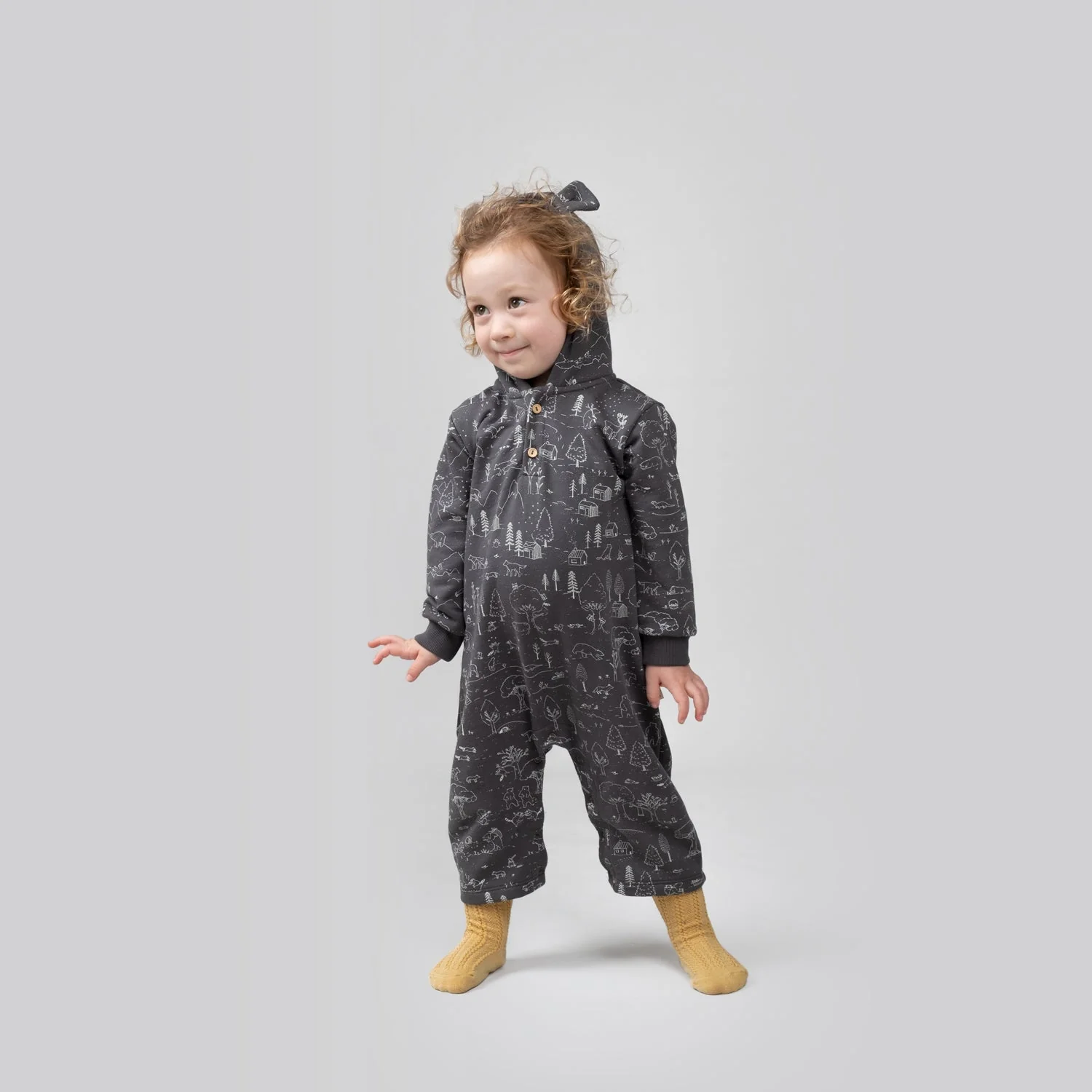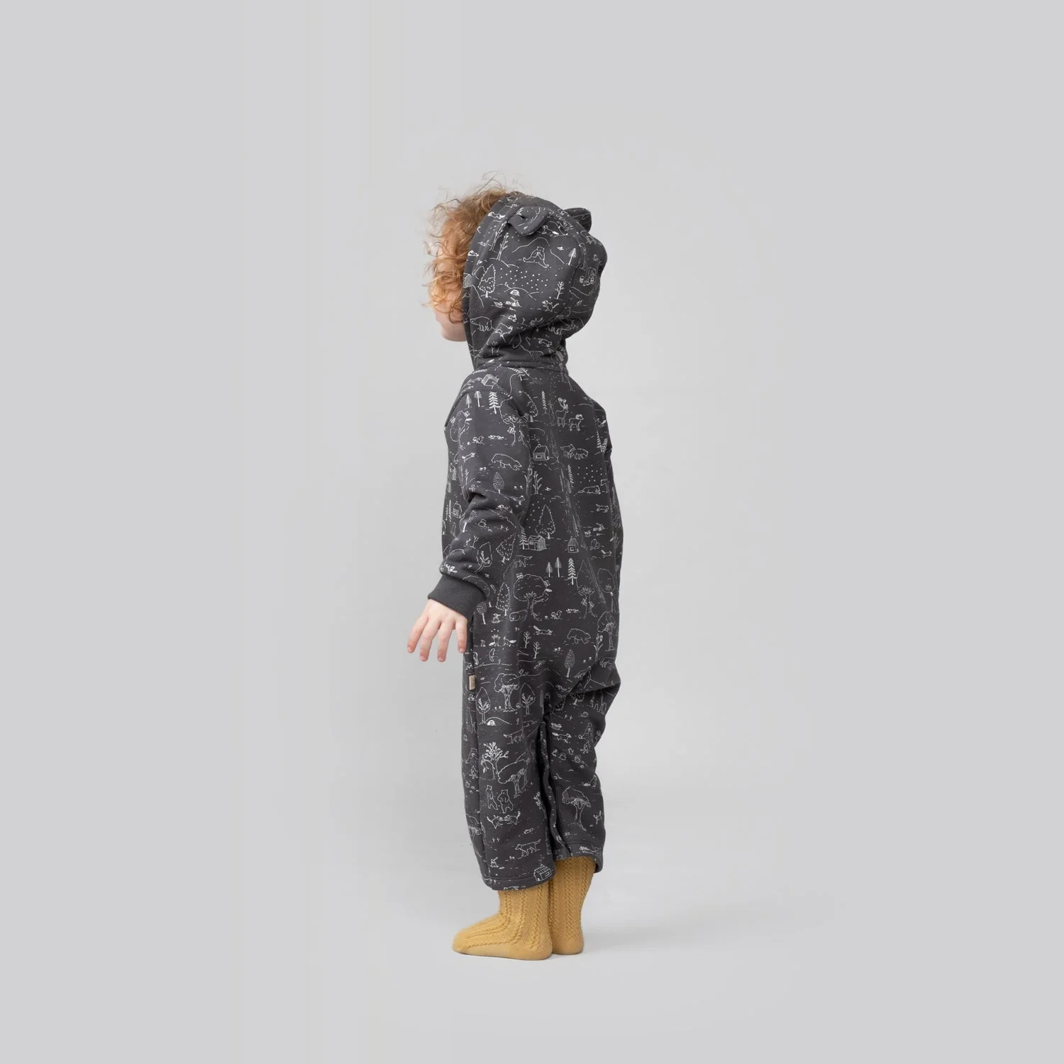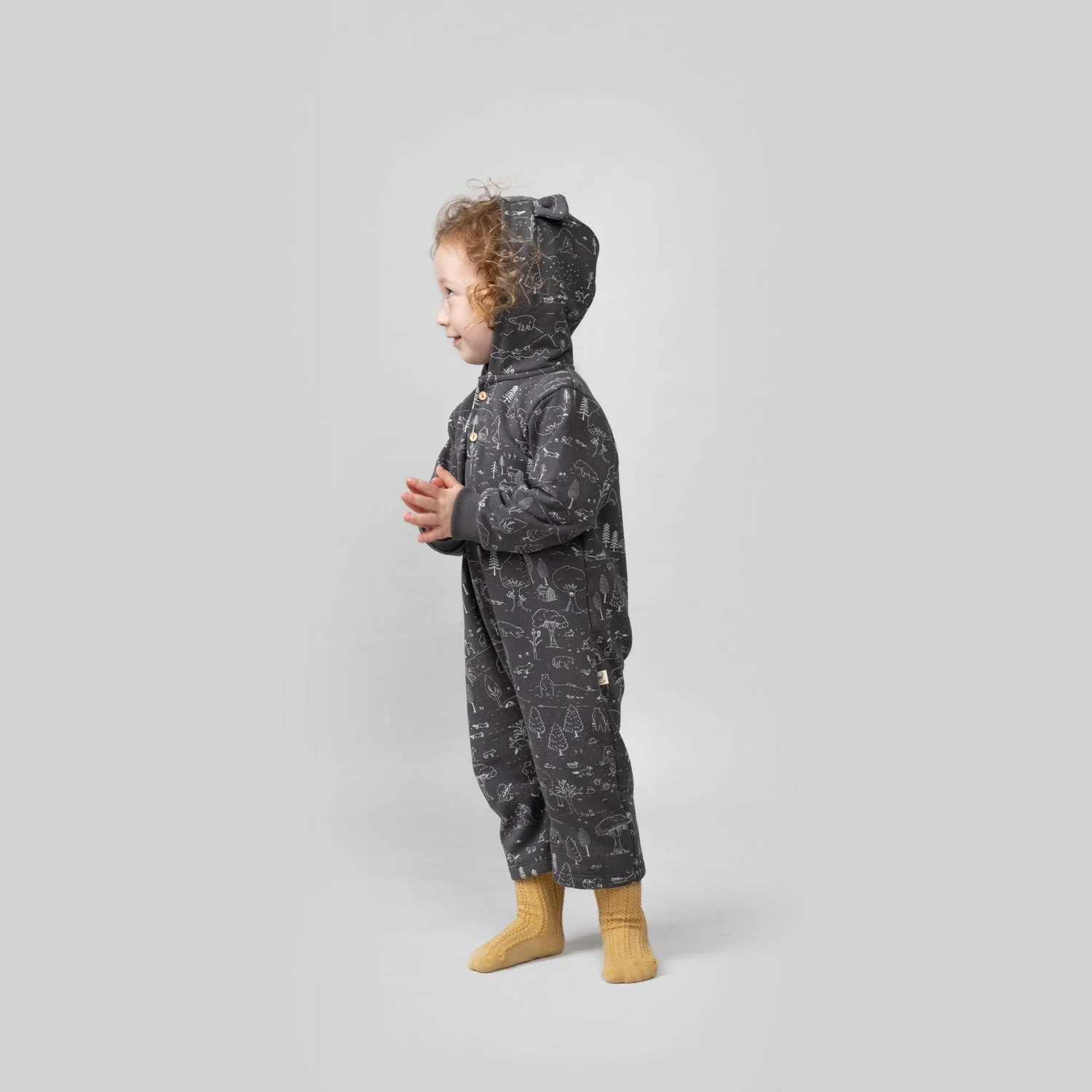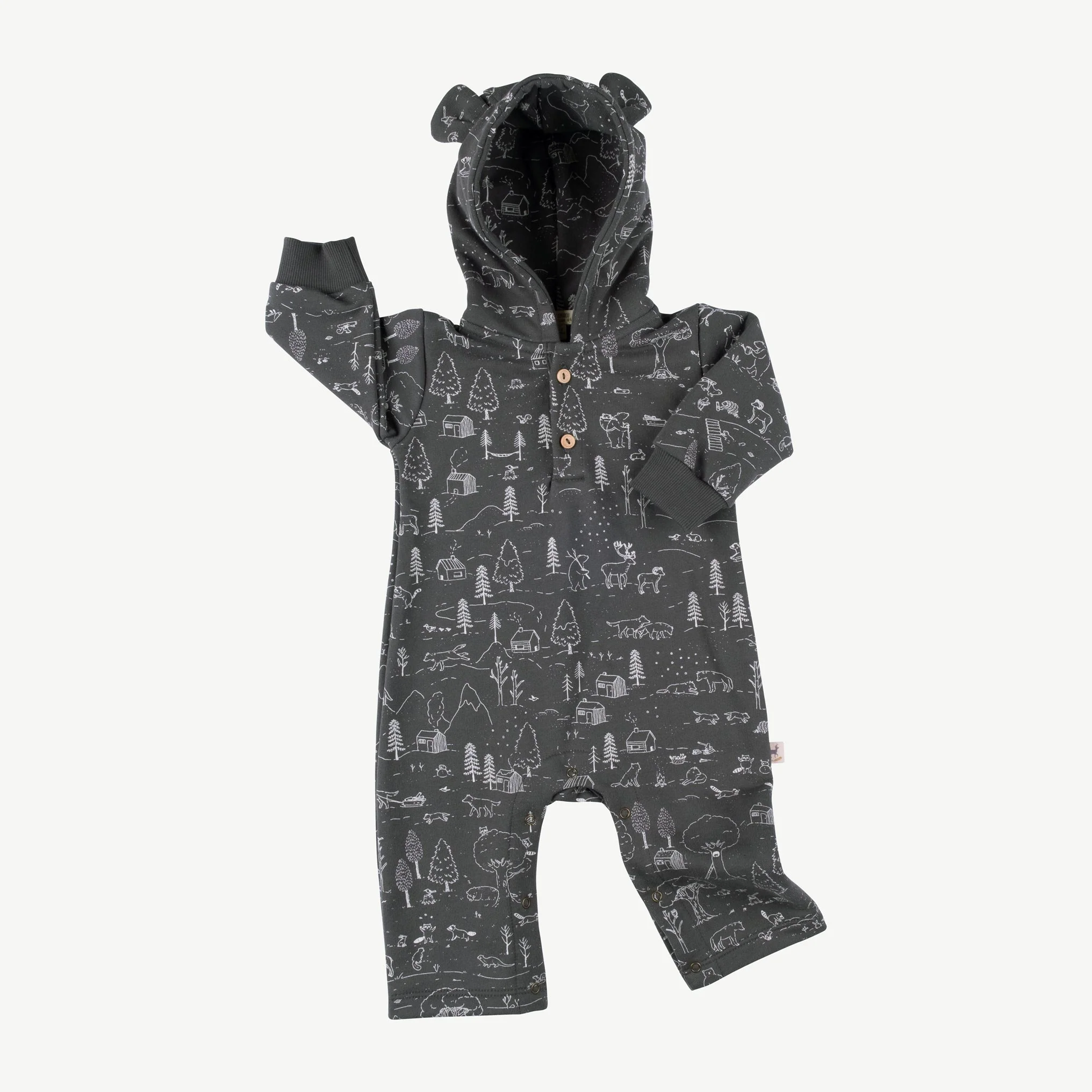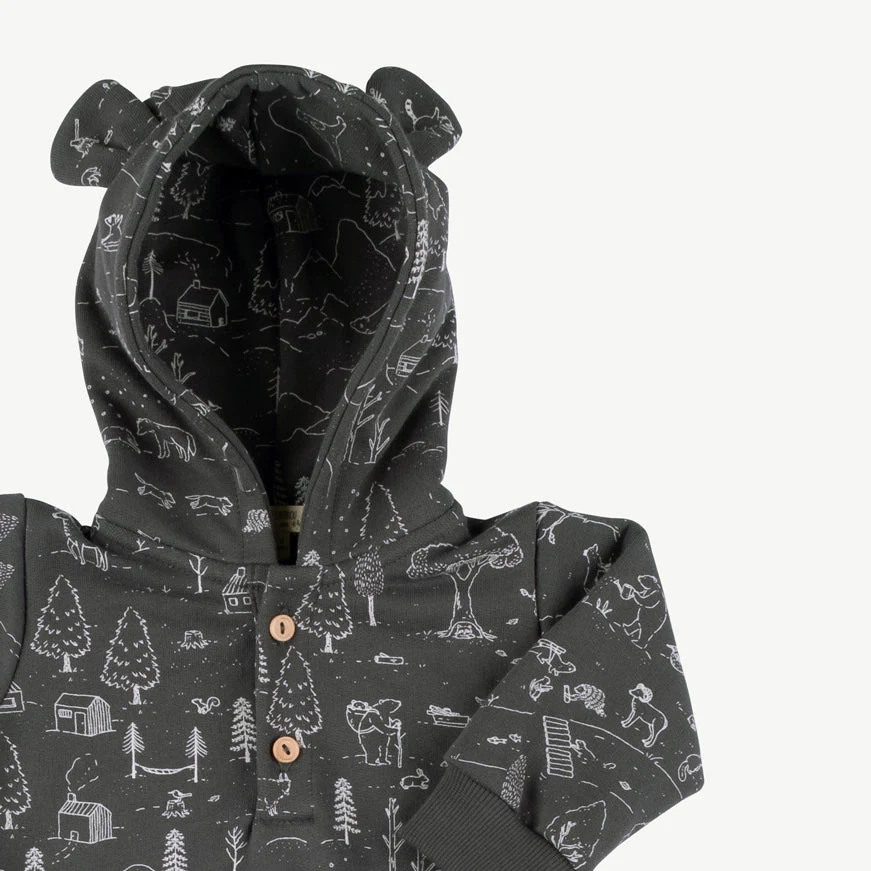 Enterizo con capucha con orejas de oso y abertura frontal con botones de madera, confeccionado en cómodo y cálido tejido French Terry íntegramente de algodón. Botones a presión de metal en la entrepierna para facilitar el cambio de pañales.
