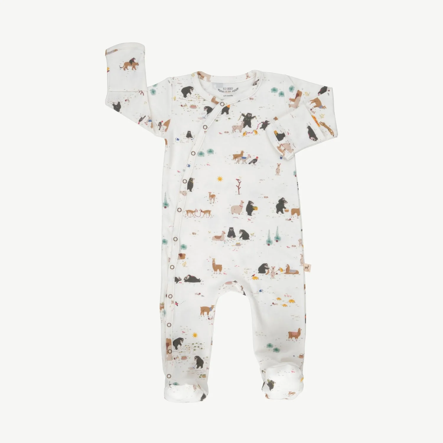 Nuestro enterizo con pies para bebé está confeccionado en Perú con 100% algodón Pima orgánico certificado GOTS—ultra suave, transpirable y duradero. Naturalmente hipoalergénico y delicado con la piel sensible, cuenta con broches metálicos desde los pies hasta el cuello para facilitar los cambios de pañal. Un básico atemporal, ideal para combinar con nuestras mantas reversibles, bandanas y gorritos.