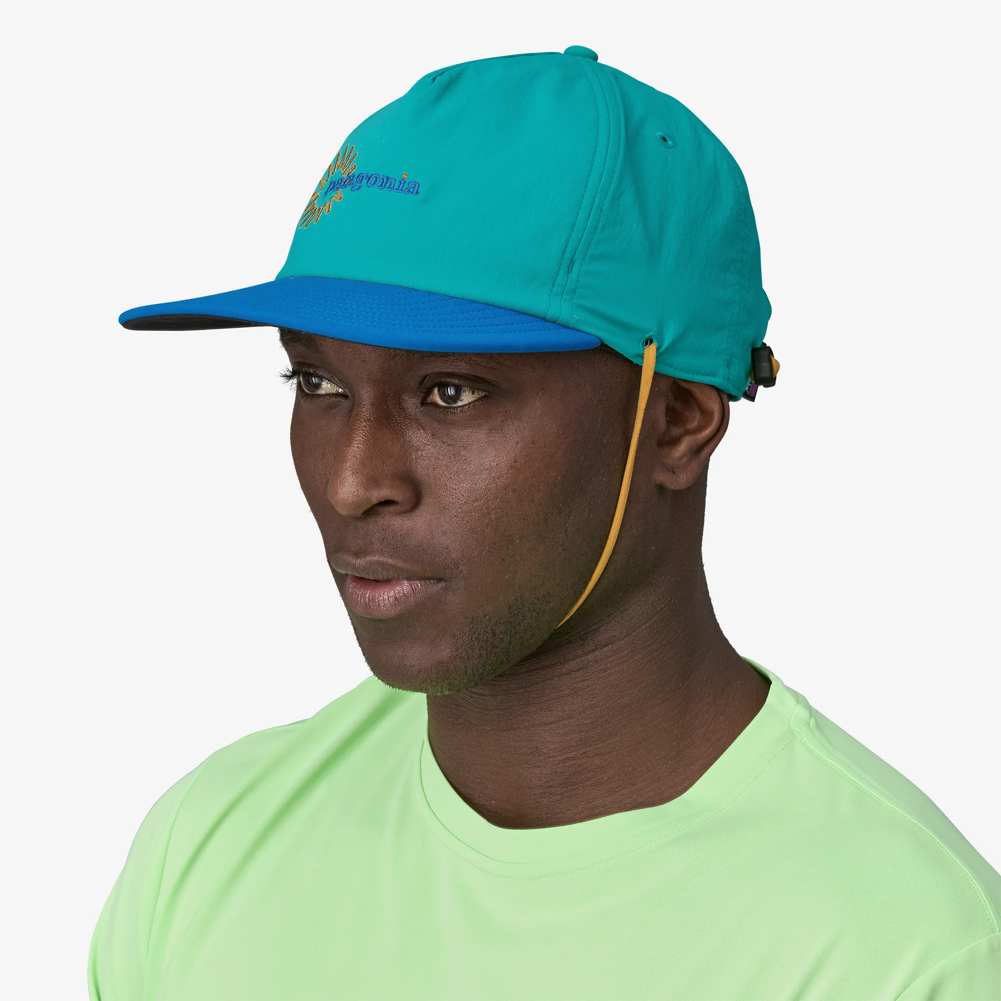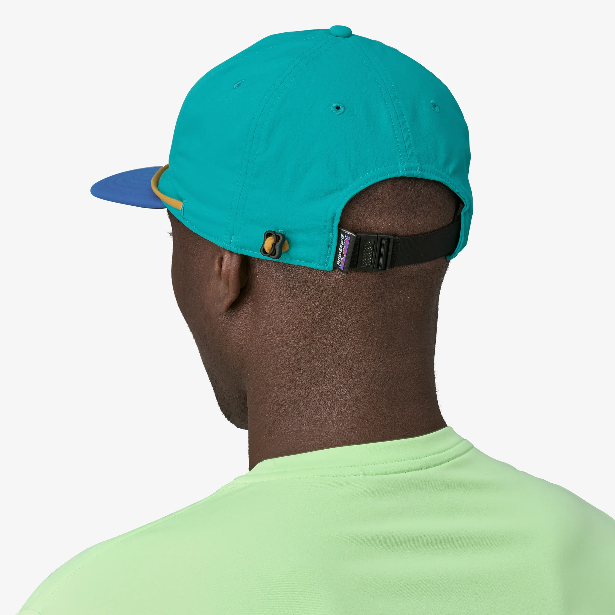 Hebilla ajustable de liberación rápida y perfil bajo en la parte posterior ofrece un ajuste ceñido; un anclaje discreto para la correa mantiene tu gorra segura, incluso cuando está sumergida.