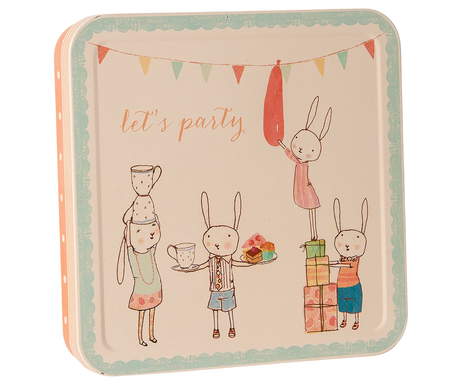 El kit de fiesta perfecto para decorar. Incluye servilletas, una girnalda de tela y corazones de confetti dentro de una preciosa caja de metal decorada.