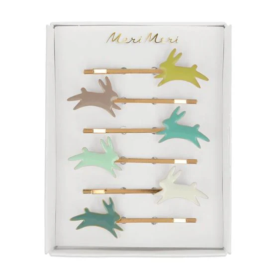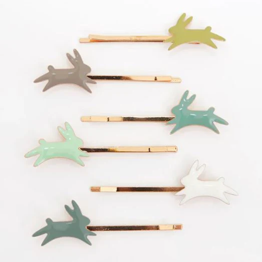 Estos preciosos accesorios de pelo con dulces conejitos esmaltados en enamel sobre horquillas dorada, , será un regalo perfecto de primavera.