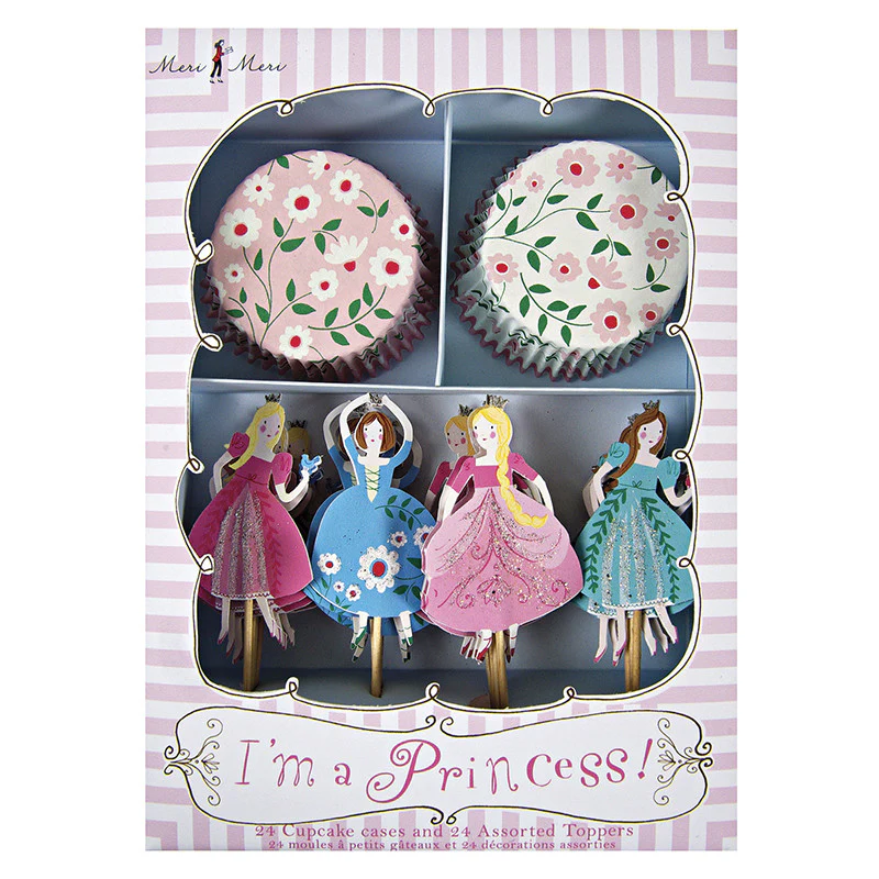 El set contiene 24 moldes en dos modelos diferentes y 24 toppers en 4 diseños. Tamaño de la caja 125x200x50mm