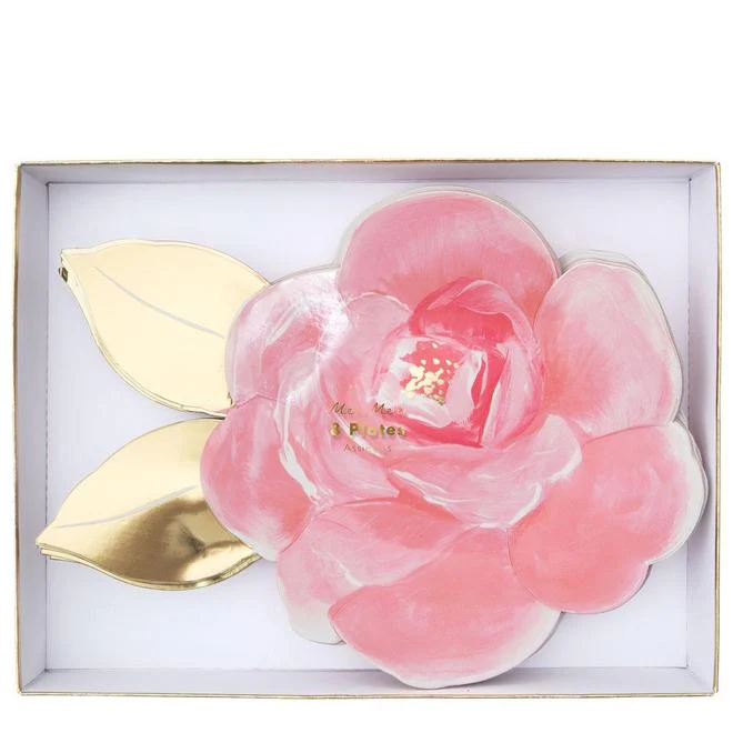 Añade encanto floral a tu mesa con estos bonitos platos en forma de rosas de jardín. Tienen hojas doradas para un toque extra de sofisticación.