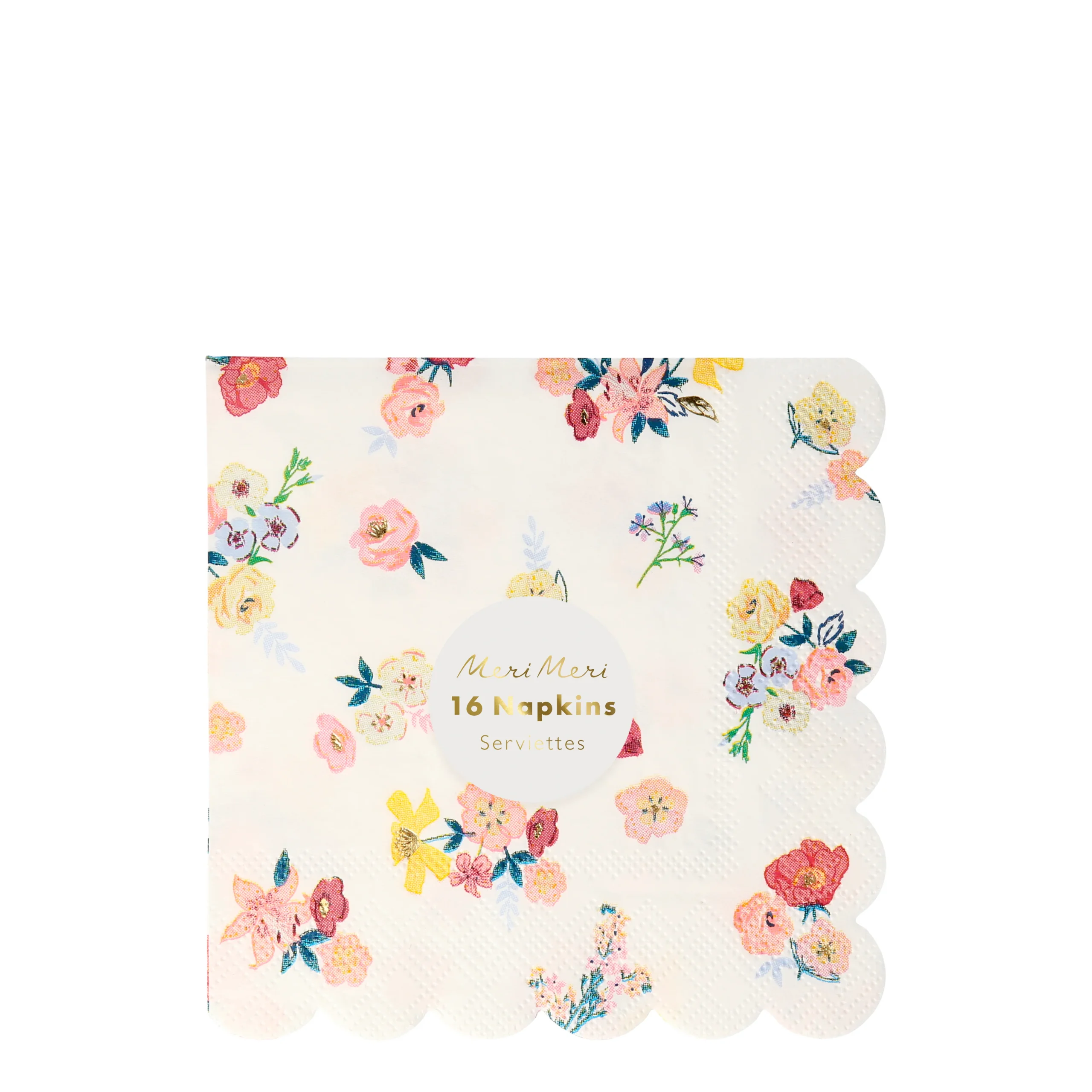 Añade encanto floral a tu mesa con estas bonitas servilletas con delicadas florecitas silvestres, el filo en ondas añade un toque sofisticado.