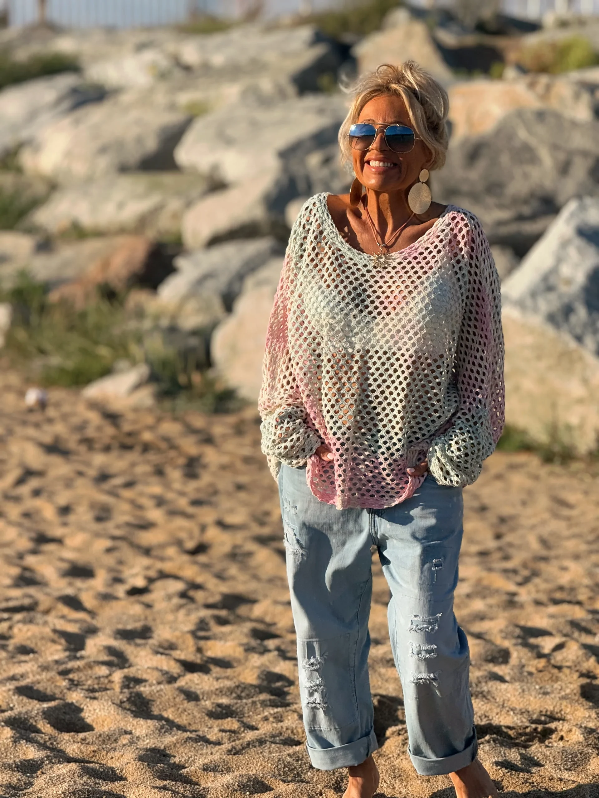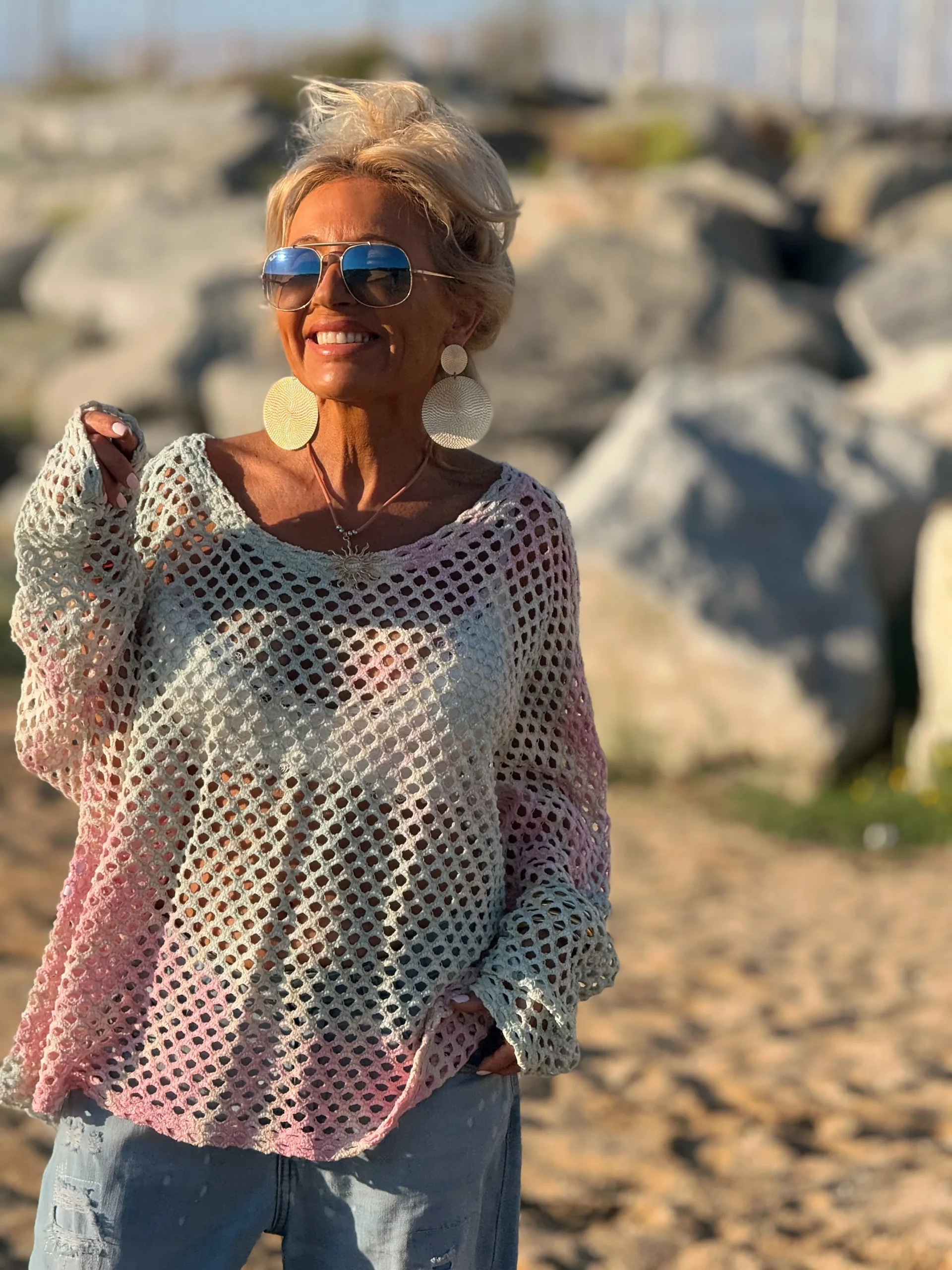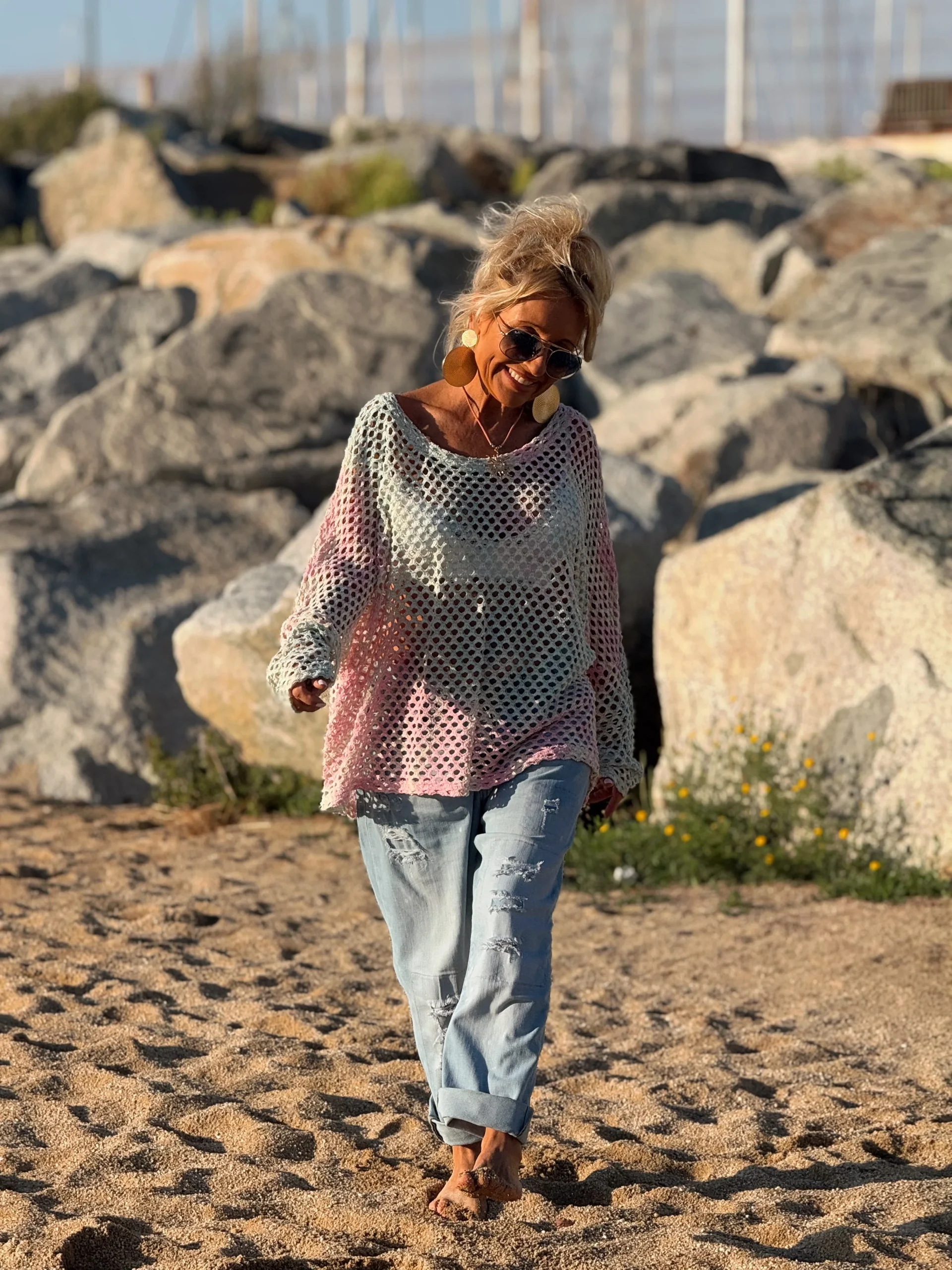 Esta maravillo jersey de agujeros tie-dye es simplemente espectacular. Su color, su corte oversize y su tejido algodón y viscosa su estilo la convierten en una prenda comodísima y con mucho estilo. Se adapta perfectamente hasta una talla 46 sin ningún problema. Es una pieza imprescindible en tu armario: ideal para cualquier ocasión, desde un look relajado hasta uno con un toque más especial.✨