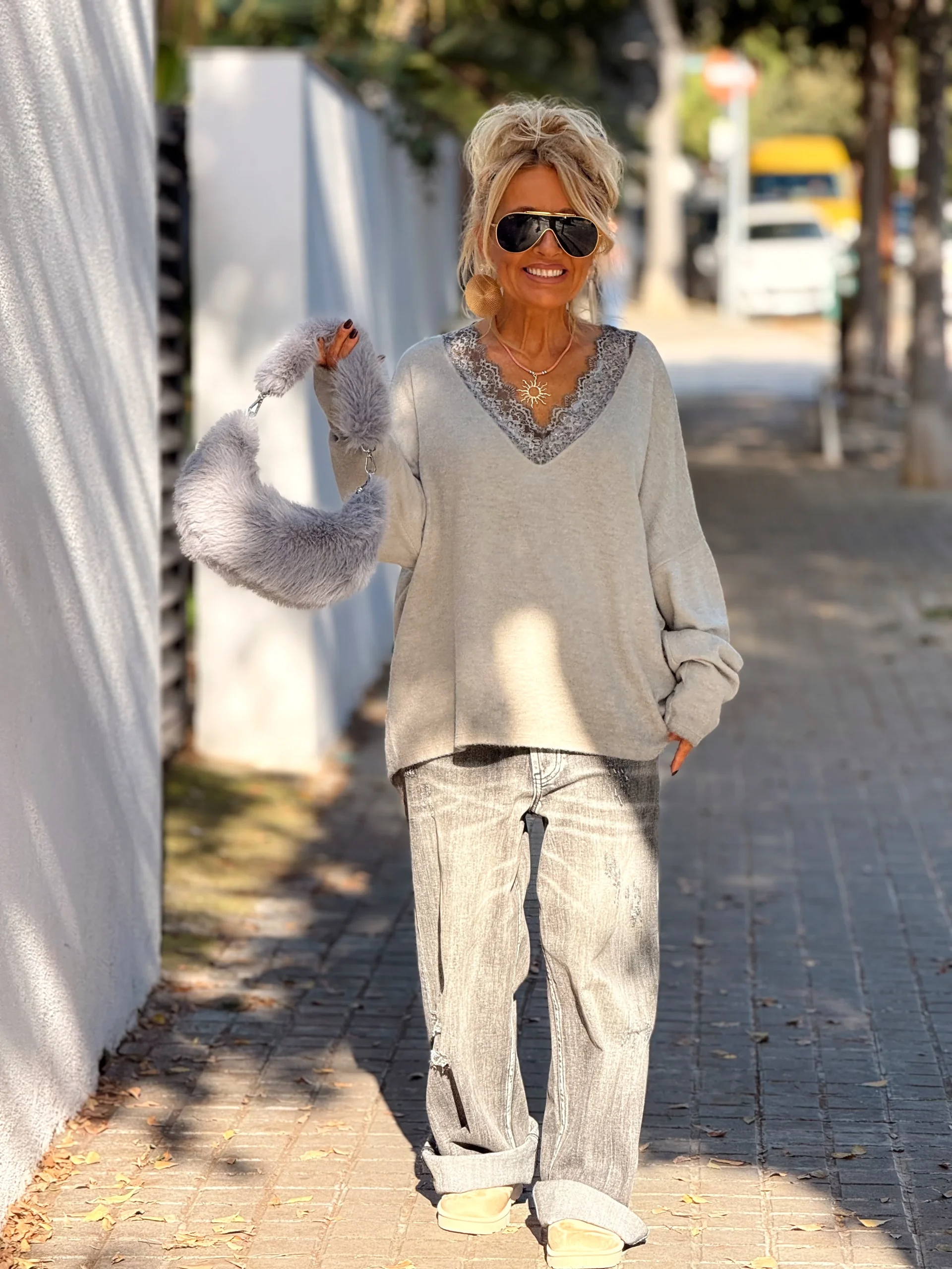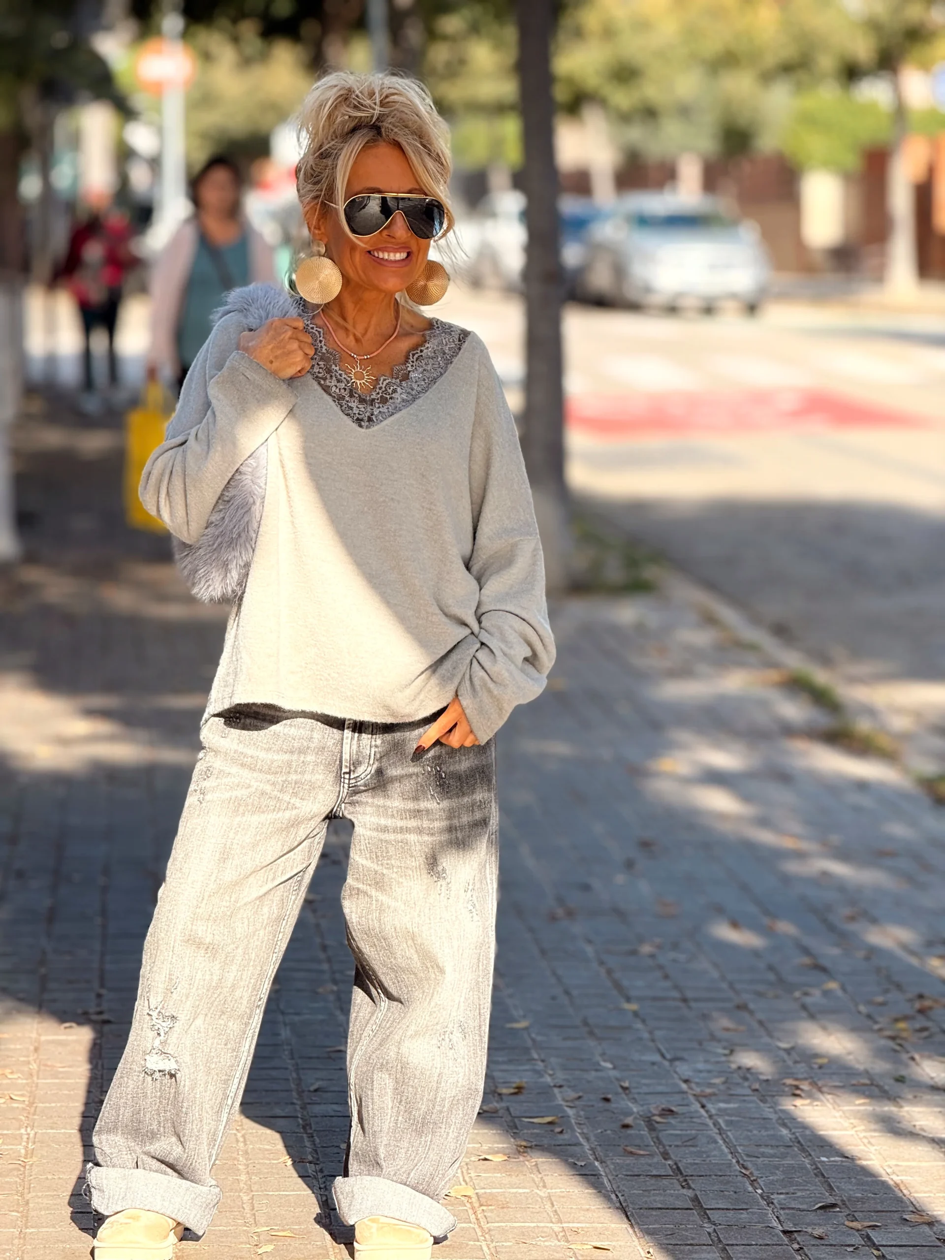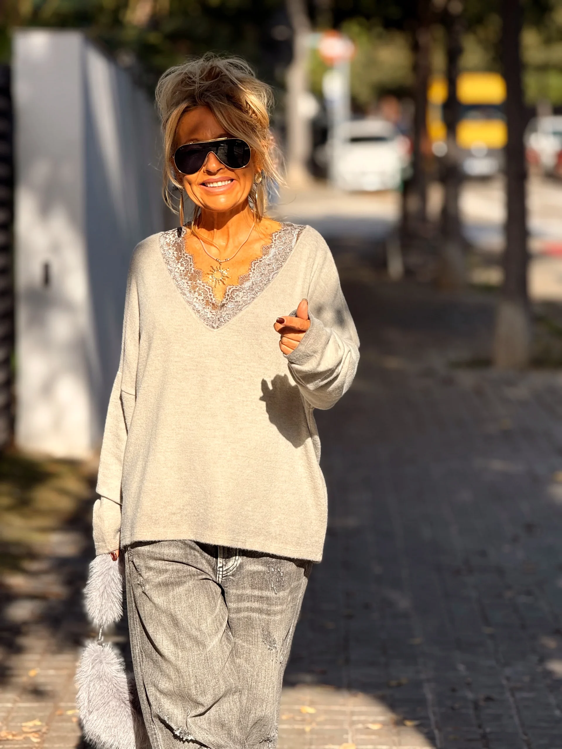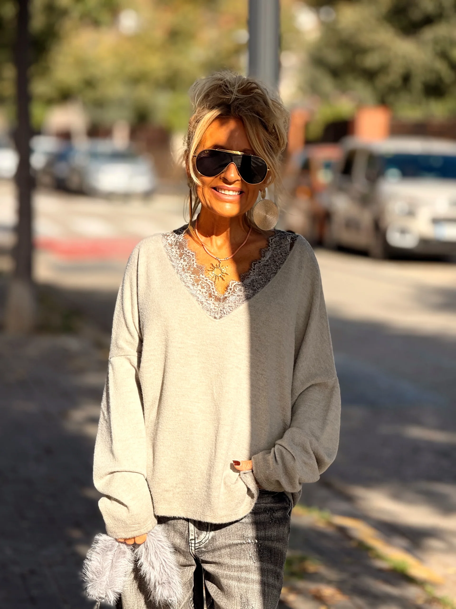 Jersey con encaje incorporado, simplemente maravilloso. 🌸 Súper elegante y femenino, muy agradable al llevar y con un estilo totalmente en tendencia.
