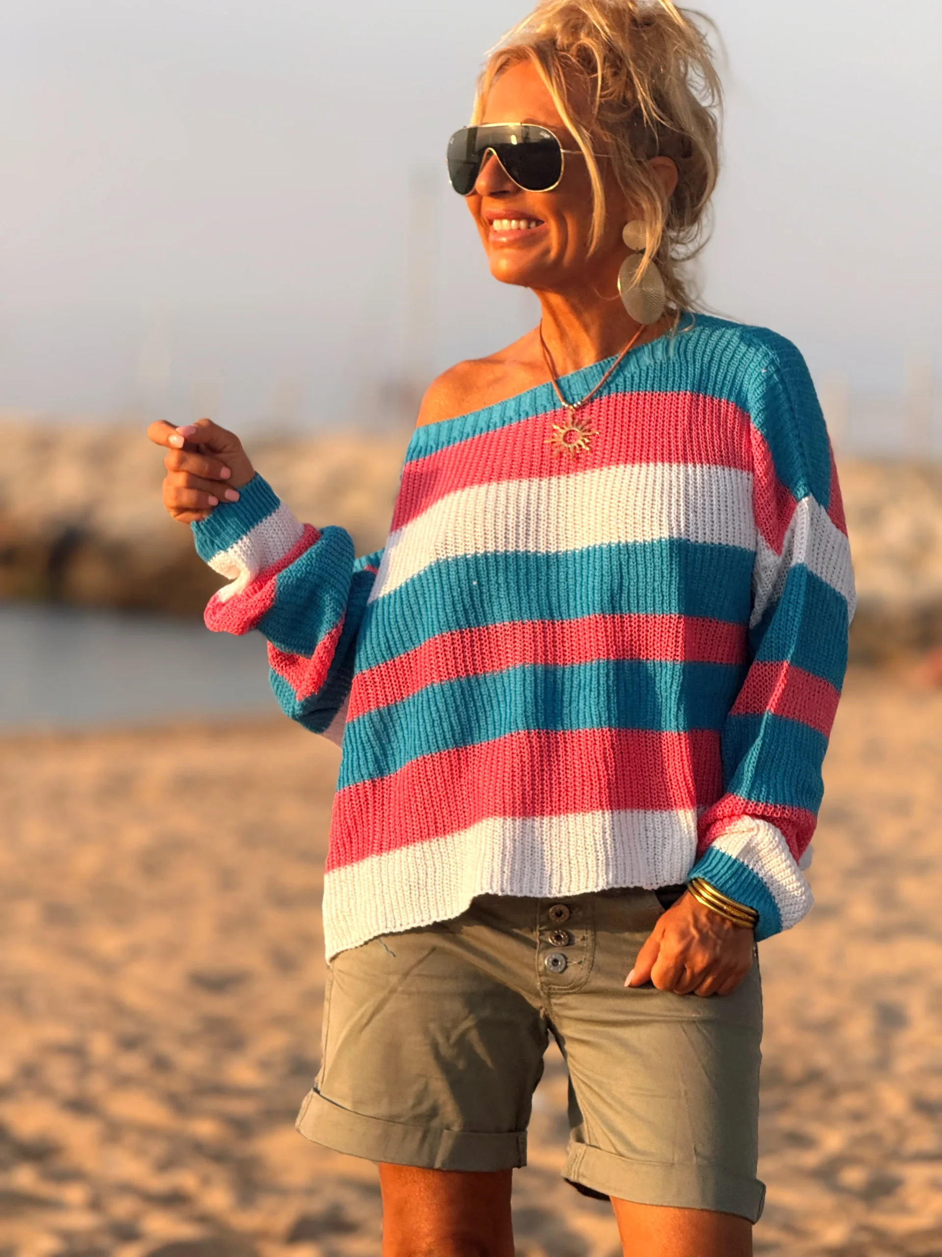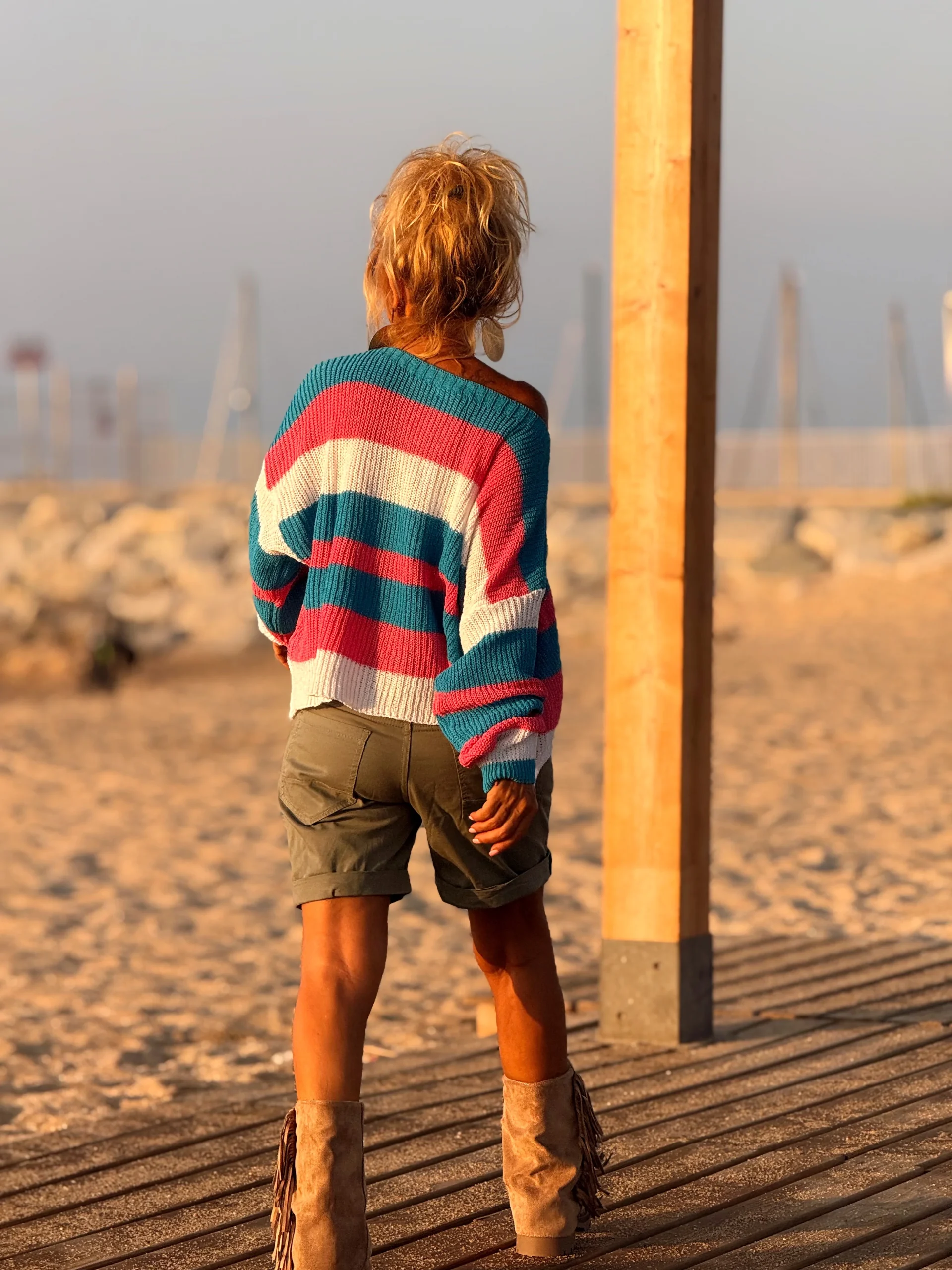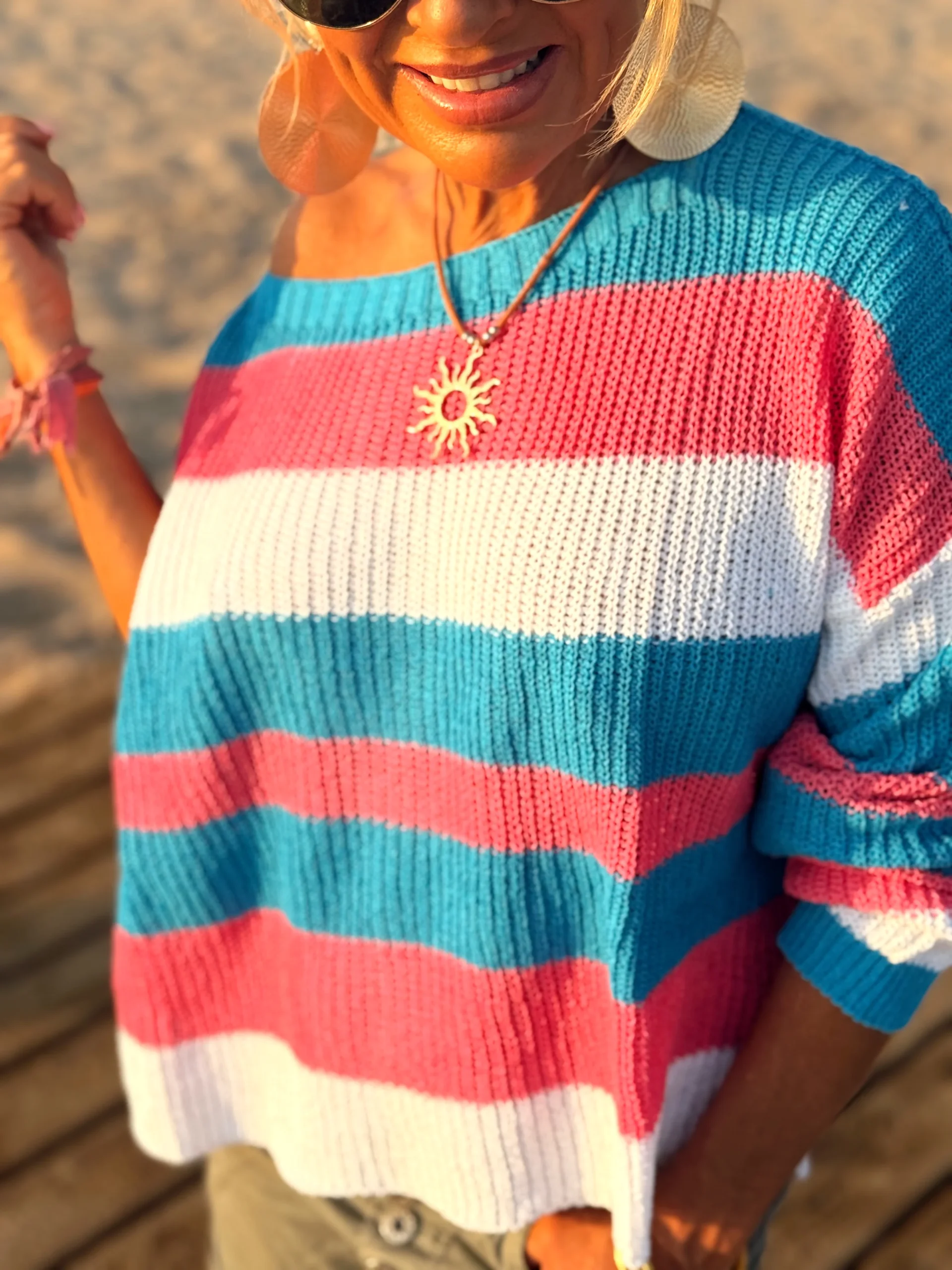 Jersey multicolor en algodón, súper cómodo y muy bonito. Se puede llevar solo o sobre una camisa, lo que lo hace versátil y perfecto para cualquier look. Es ese tipo de suéter corto que no puede faltar en tu armario: ¡simplemente adorable!✨