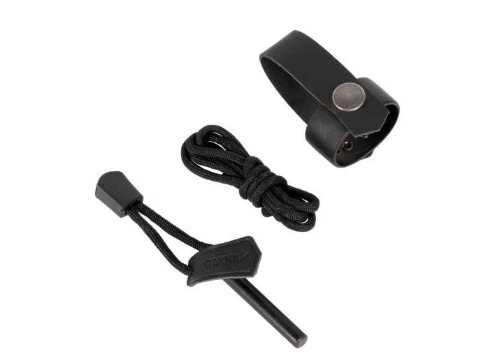 El kit consiste en un iniciador de fuego, paracord y atalaje secundario, los mismos accesorios que se incluyen en el modelo del kit Eldris Neck Knife.