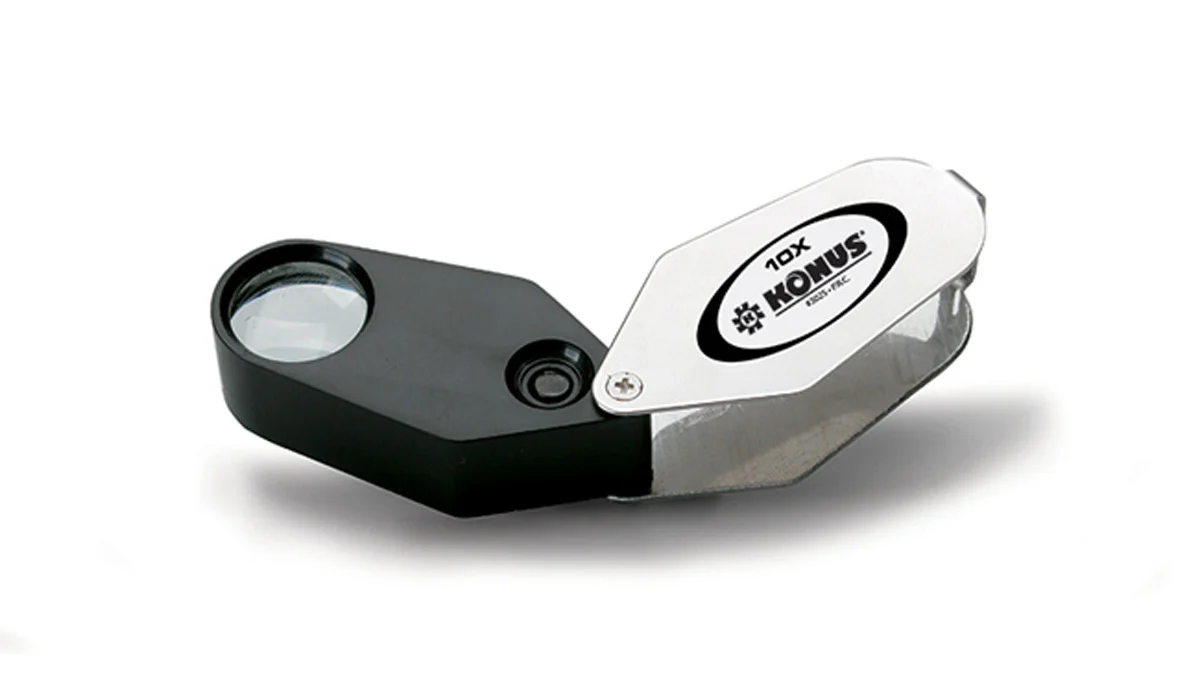 Kit de 6 unidades de cuentahilos plegables con luz LED y aumento de 10x. Incluye pilas y estuche rígido. Ideal para inspección detallada.
