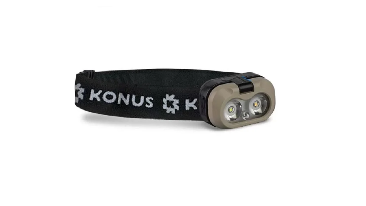 Linterna frontal recargable Konusflash-8 con 450 lúmenes, 5 modos de iluminación, sensor de movimiento y resistencia al agua. Ideal para camping y senderismo.