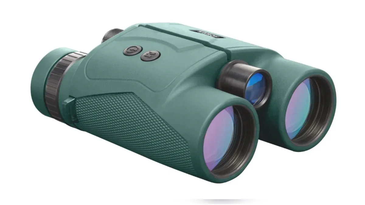 Telémetro laser Konusrange-2 10×42 con rango de 5-1200m. Mide distancia, velocidad, ángulo y elevación. Resistente al agua y con revestimiento de goma.