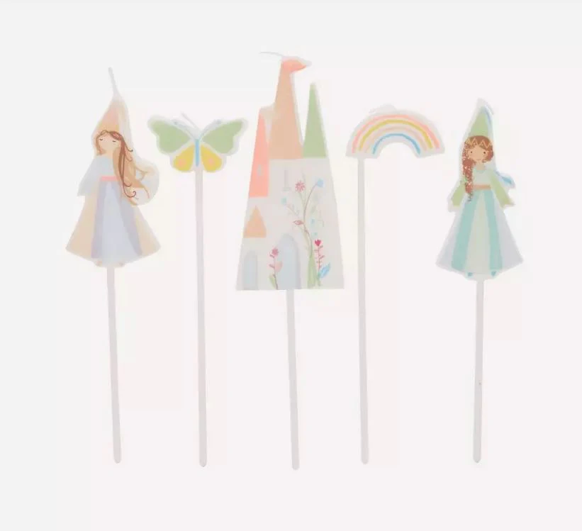 5 velas súper especiales con los motivos de la colección Magical Princess