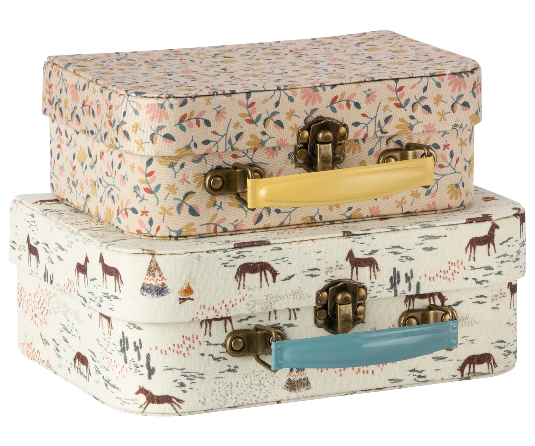 Estas dulces maletas con un adorable estampado Maileg son perfectas para almacenar juguetes favoritos, recuerdos del bebé, fotos… o para contener un regalo para el recién nacido.