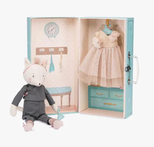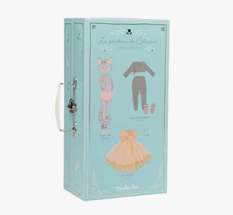 La ratita mágica de la colección «Érase una vez» se ha convertido en la reina de las bailarinas. Viste un brillante tutú rosa y en su maleta, con armario y espejo, guarda otros 2 tutús más que le quedarán de maravilla. Este precioso maletín ilustrado, permite a la hadita que lo posee llevárselo allá dónde vaya.