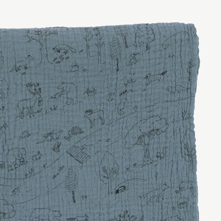 La muselina, también conocida como gasa doble, es una tela muy delicada, súper suave, esponjosa y nada elástica, perfecta para las pieles delicadas. Este tejido tiene dos capas juntas de un mismo tejido unidas por muchos puntos que hace imposible separarlas. Tiene una textura ligeramente arrugada, muy similar a una gasa. Se usa comúnmente en mantas para bebés.