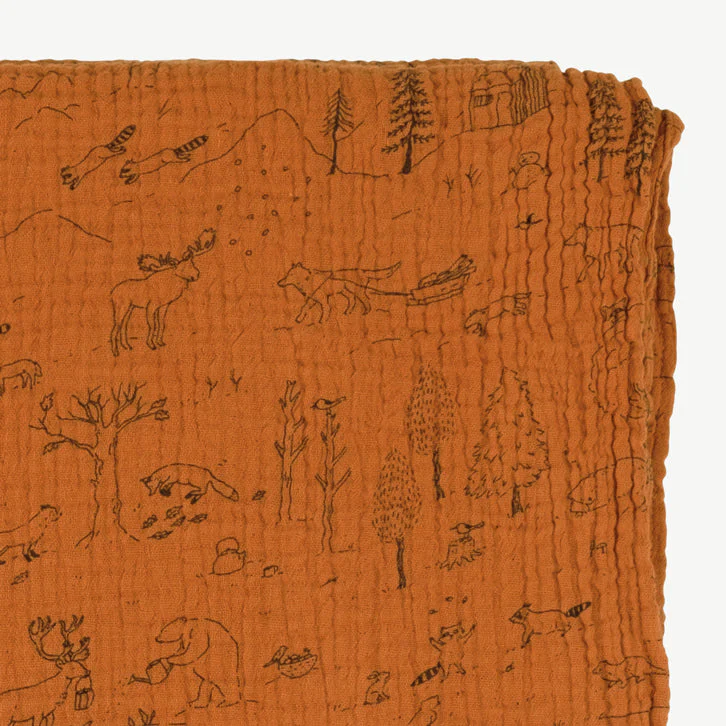La muselina, también conocida como gasa doble, es una tela muy delicada, súper suave, esponjosa y nada elástica, perfecta para las pieles delicadas. Este tejido tiene dos capas juntas de un mismo tejido unidas por muchos puntos que hace imposible separarlas. Tiene una textura ligeramente arrugada, muy similar a una gasa. Se usa comúnmente en mantas para bebés.