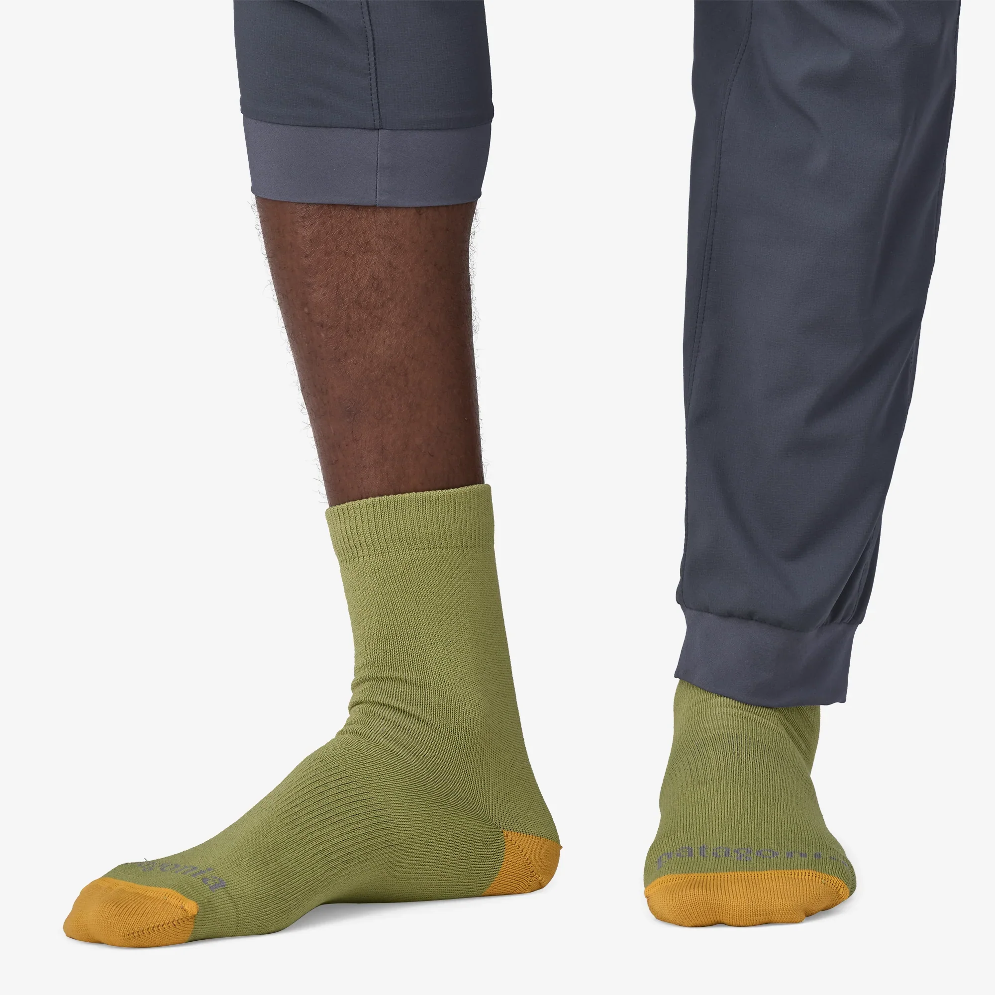 Combinaci贸n de Telas Ultraligera. Tejido de baja densidad para una sensaci贸n ultraligera. Longitud 3/4. Media de 3/4 de largo. Comodidad para Todo el D铆a. La sensaci贸n suave permite colocarlos f谩cilmente debajo de calcetines de senderismo o de pesca. Logo Integrado . El logo de Patagonia est谩 integrado en la media para reducir su volumen. Hechos en EE.UU. Hechos en una f谩brica familiar en los Estados Unidos.