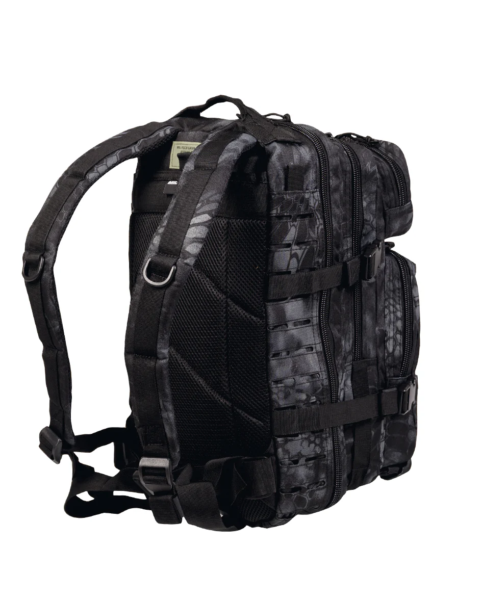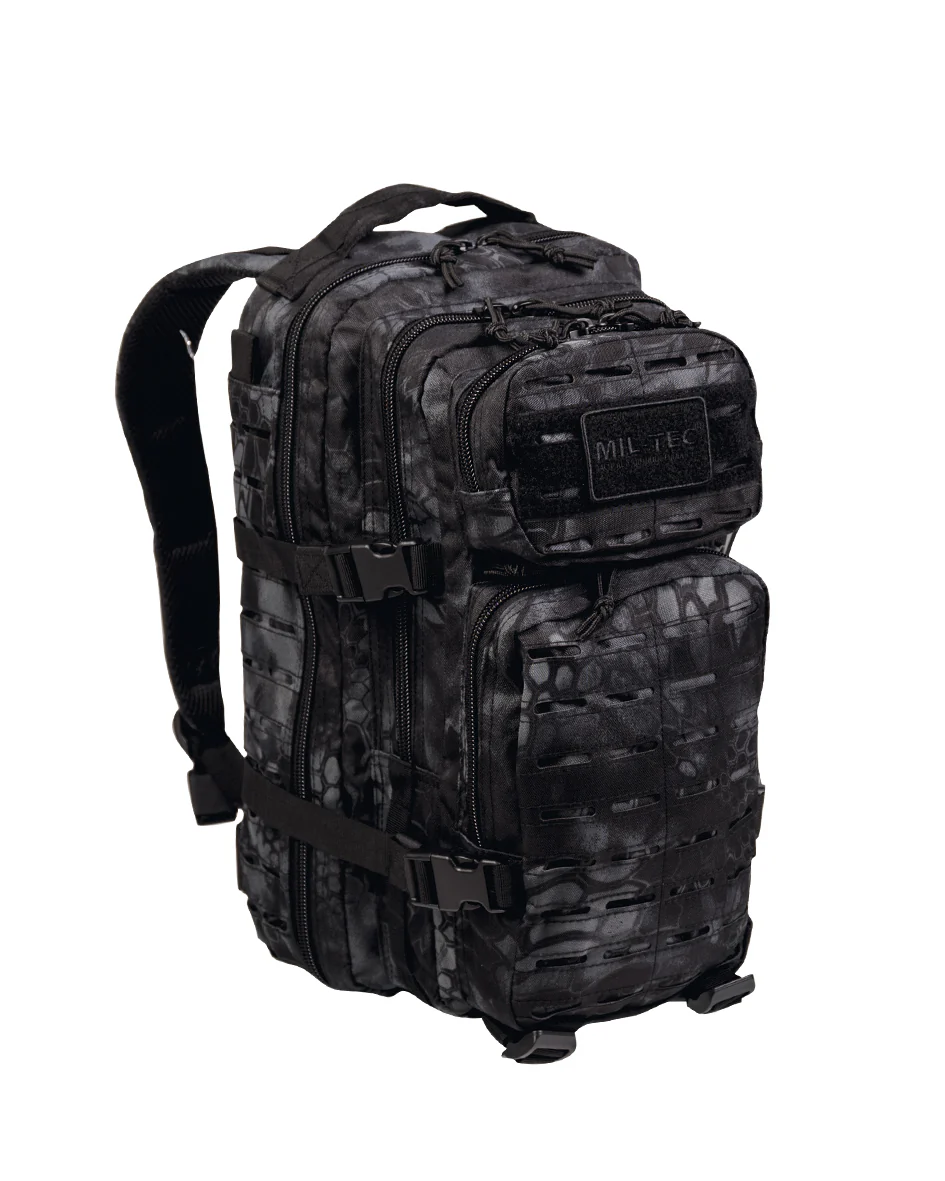 Mochila Miltec us assault con sistema molle lasert cut, disponible en dos tamaños de 36L o 22L de capacidad y varios camuflajes para 24/36 horas, acolchada y muy cómoda para el usuario, gran cantidad de bolsillos y compartimientos para llevar todo perfectamente ordenado, sistema molle en el exterior, posibilidad de llevar sistema de hidratación.