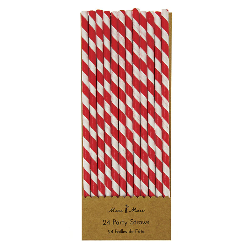 Un patrón simple de rayas rojas y blancas, en la sencillez está la virtud de estas pajitas de papel que alegrarán cualquier mesa. Perfecto para las colecciones Navidad, cascanueces, Circo, Ahoy there pirate, Howdy Cowboy…