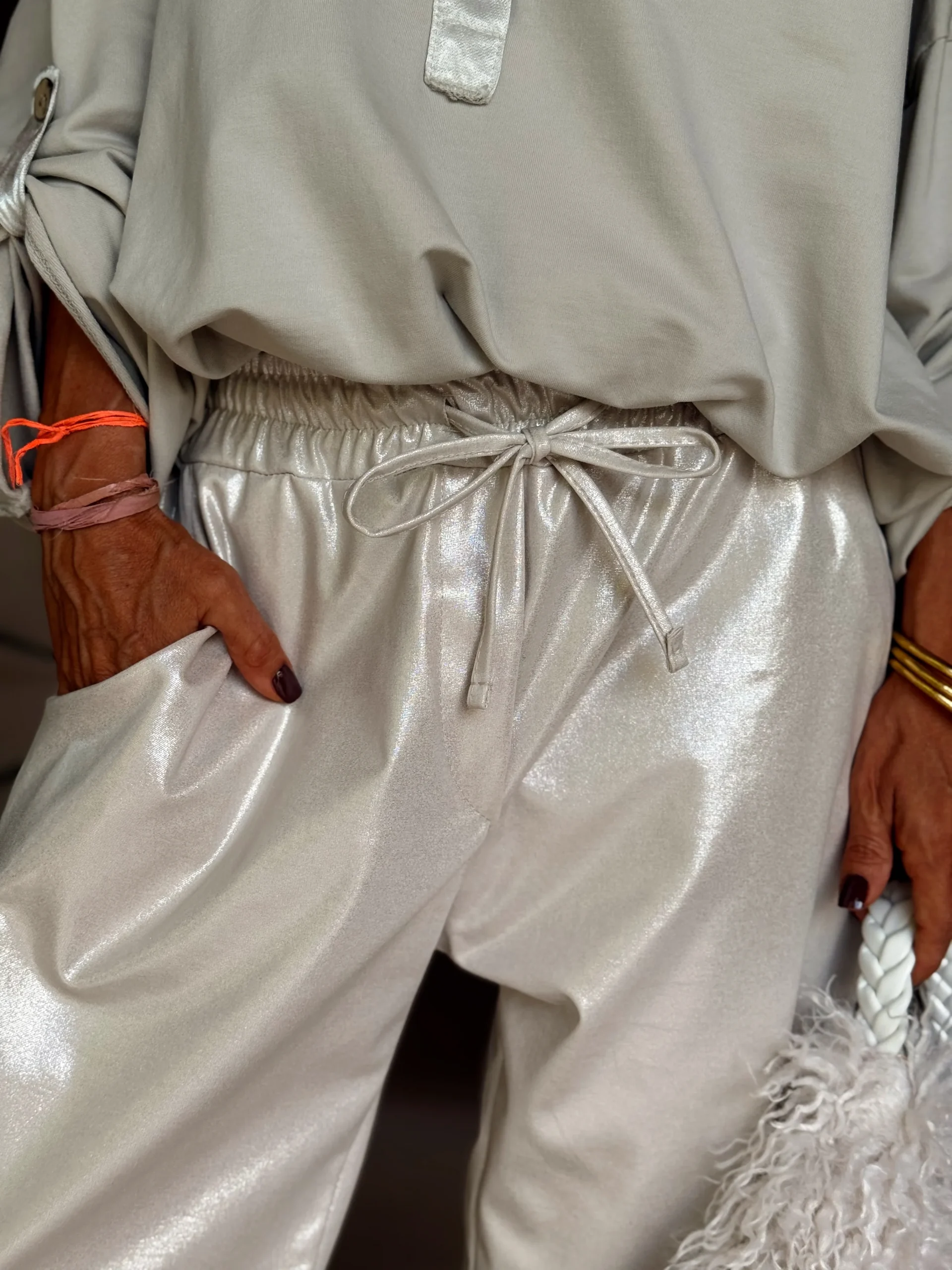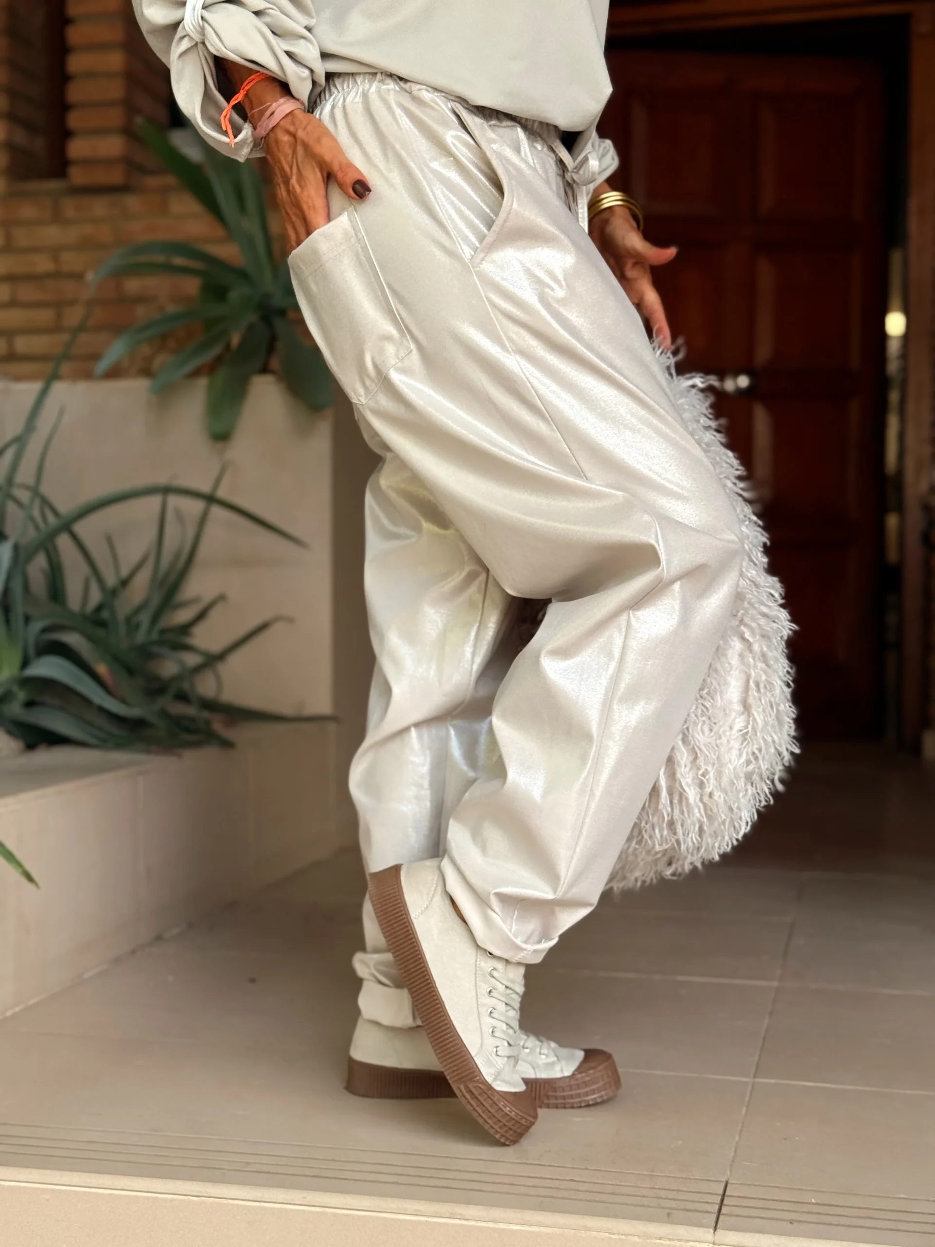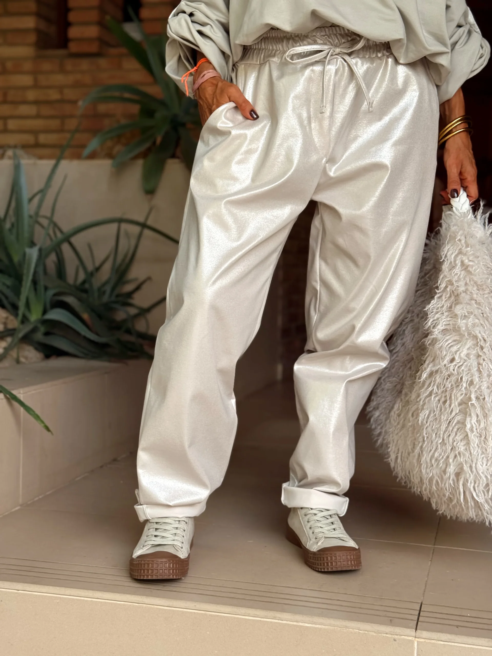Un pantalón brillante y versátil, perfecto para ir a trabajar, para el fin de semana o para una noche especial. 🌙 Es de esas prendas imprescindibles que puedes llevar en cualquier ocasión… ¡incluso en las fiestas!✨