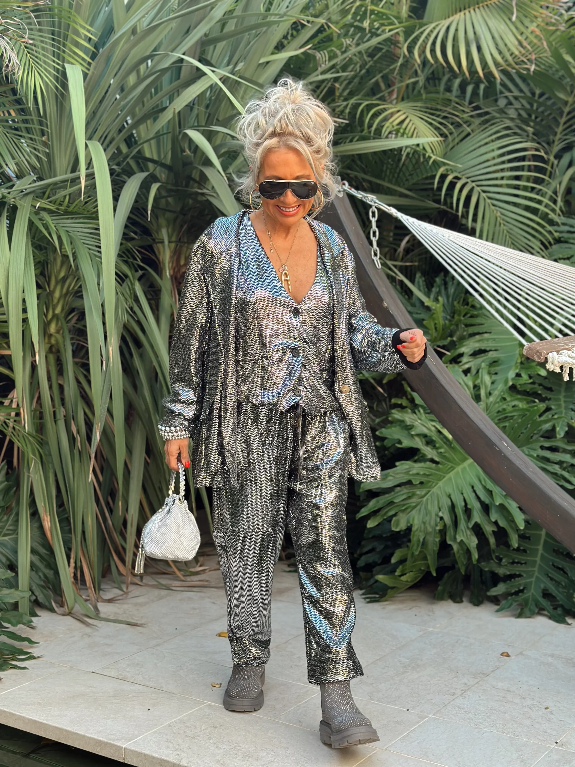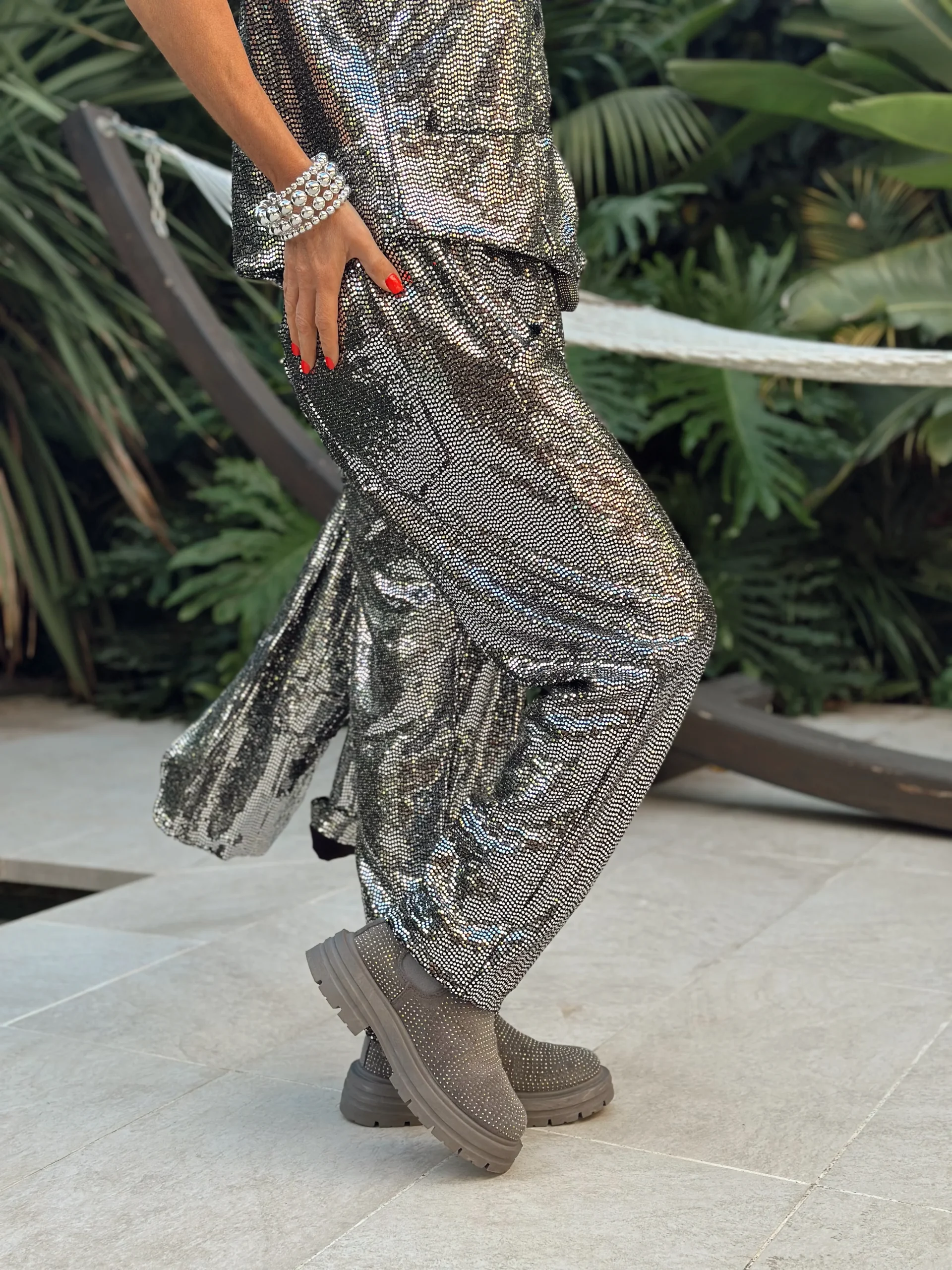PANTALÓN LENTEJUELAS CRISTINA PLATEADO