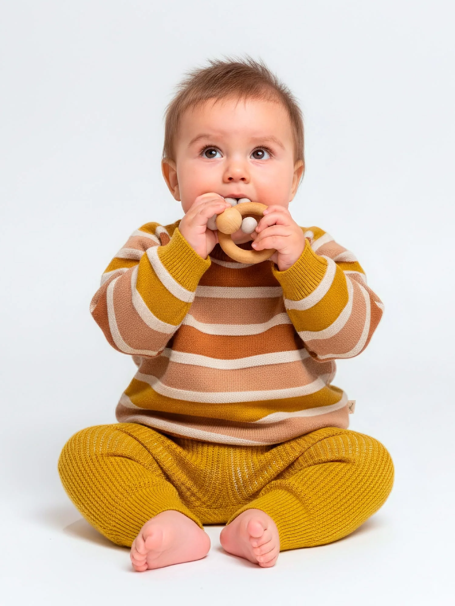 Viste a tu bebé con comodidad y estilo con nuestros pantalones tejidos para bebé, que presentan un encantador patrón de rayas verticales en dos colores. Hechos de algodón suave y transpirable, estos pantalones aseguran que tu pequeño/a se mantenga cómodo/a durante todo el día. El diseño clásico de tejido y las rayas juguetonas los hacen perfectos para cualquier ocasión, desde el juego hasta las salidas.