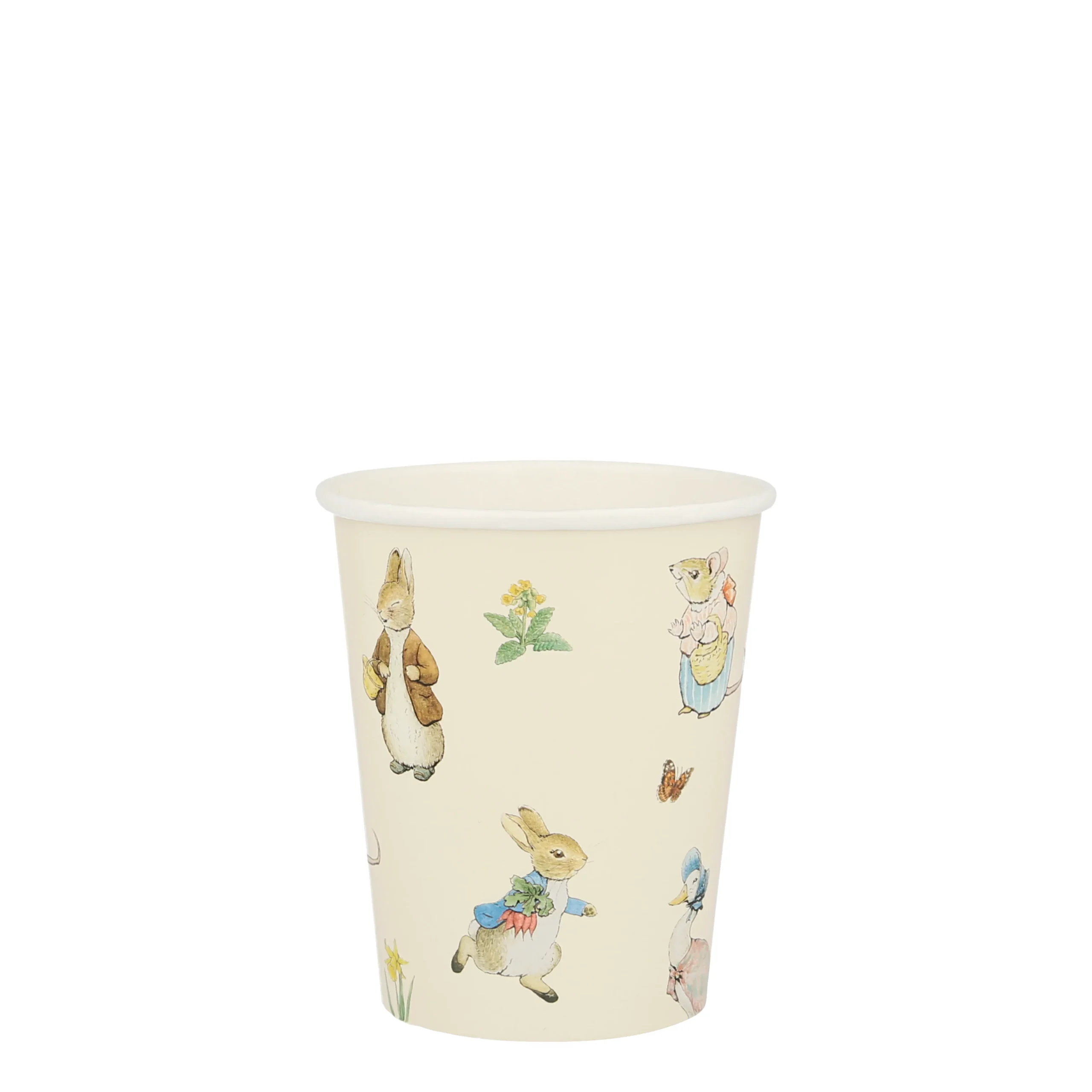 Contiene 12 vasos con los estampados de la colección Peter Rabbit.