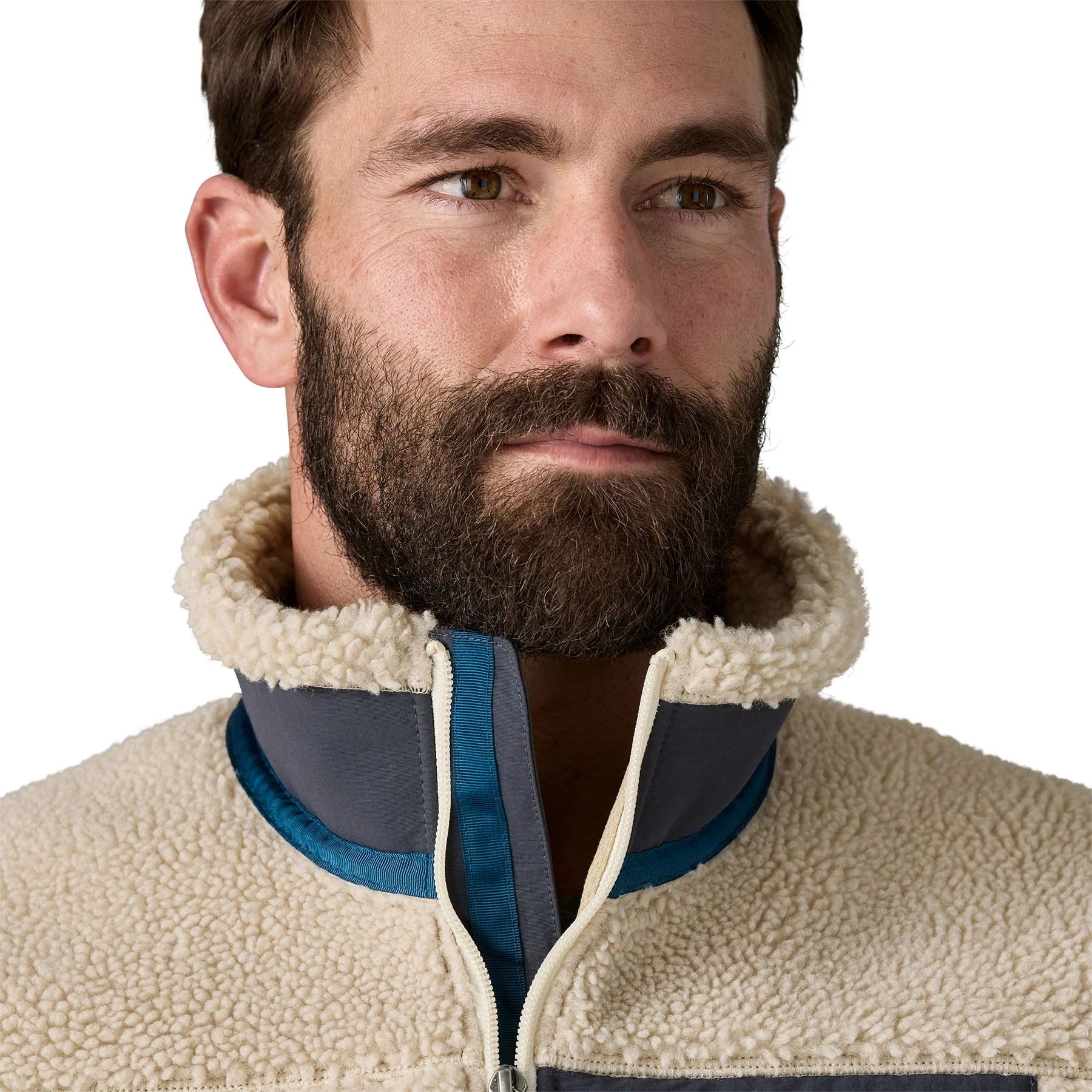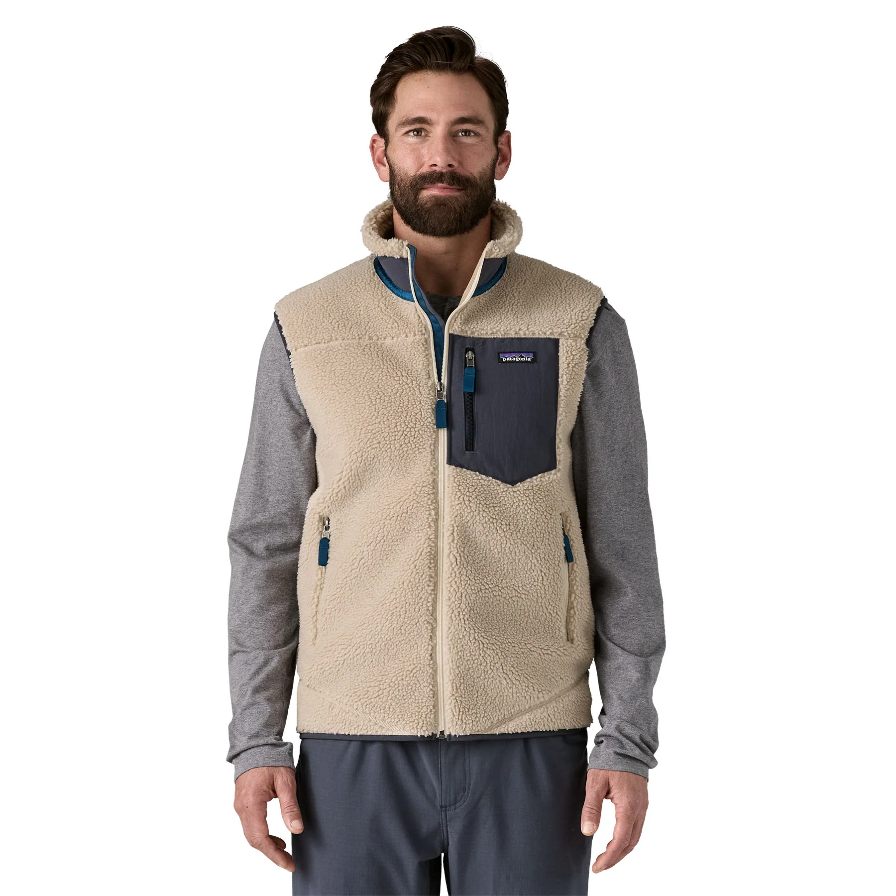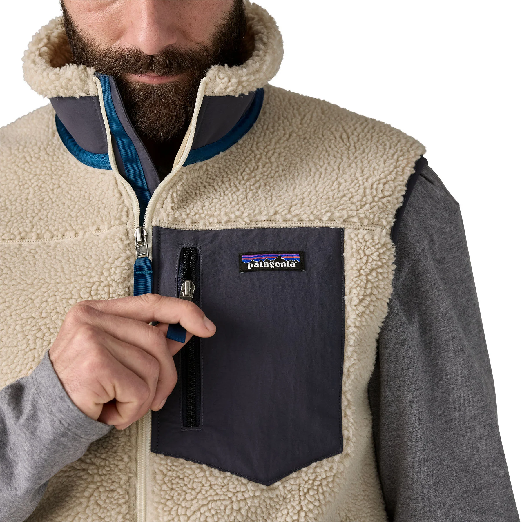 La calidez suave y fácil de usar del chaleco polar Retro-X de Patagonia para hombre aísla tu núcleo, bloquea el viento y libera tus brazos para la movilidad. Membrana cortaviento entre el exterior de polar sherpa con pelo de ¼» y la malla tejida, aireada y absorbente. Cierre completo con solapa contra viento interior. Bolsillo vertical con cierre en el pecho; bolsillos para las manos con cierre, forrados en malla de poliéster cepillado