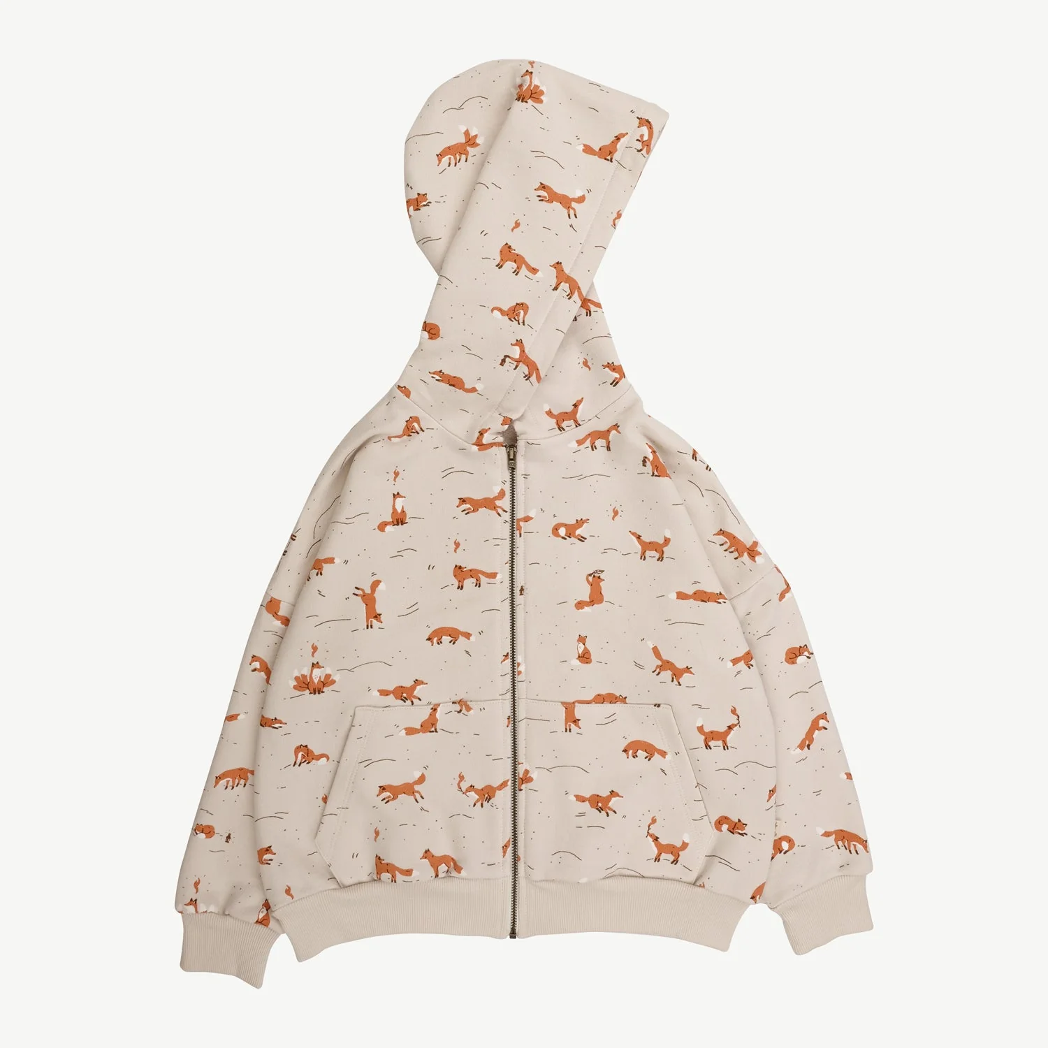 Polera con capucha y cremallera de metal, confeccionada en tela French Terry, acogedora y súper suave.
