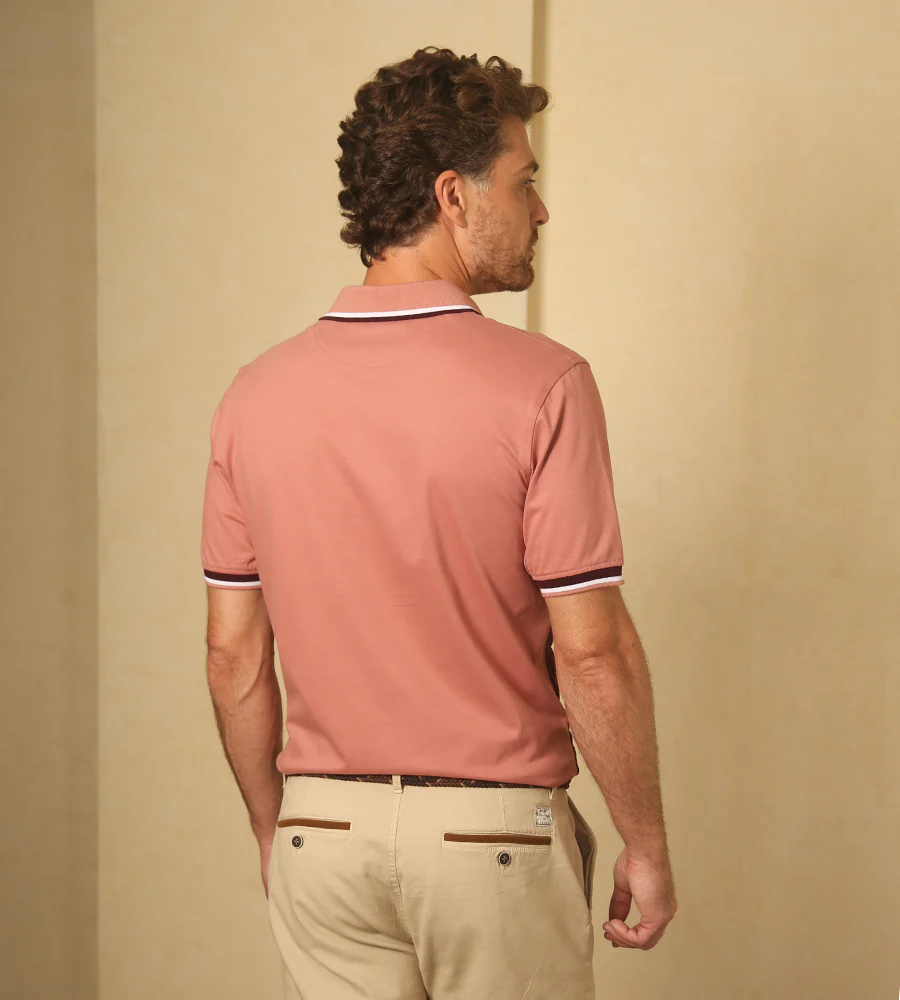 Camiseta tipo polo rosa viejo.