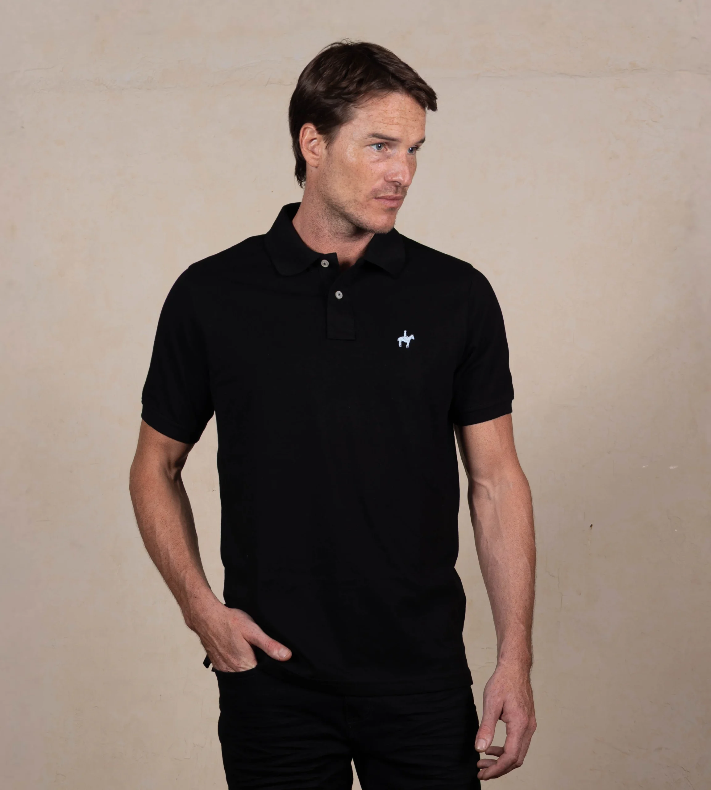 Camiseta tipo polo color negro.