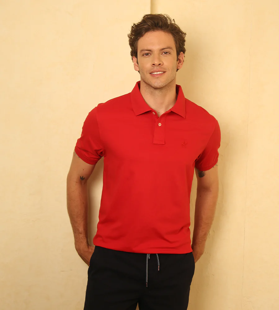 Camiseta tipo polo color rojo.