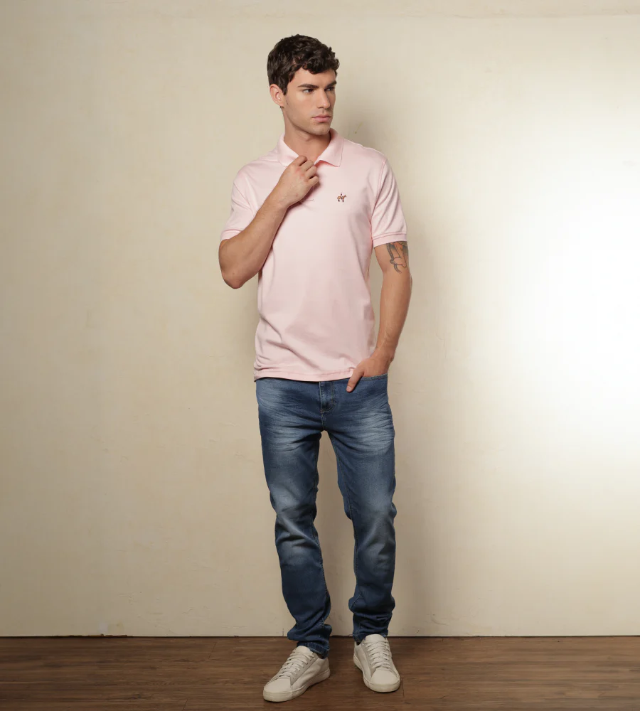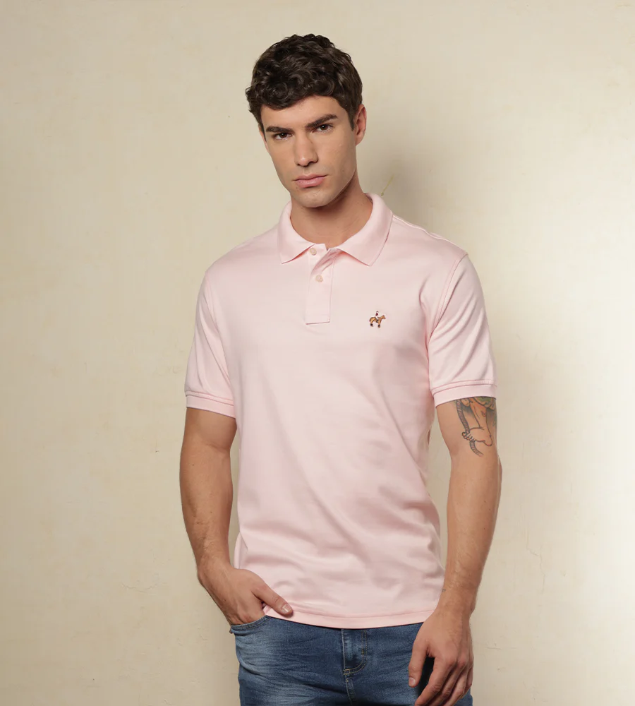 Camiseta tipo polo color rosado claro.