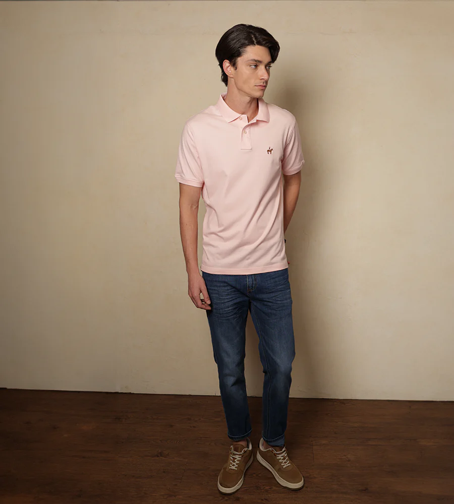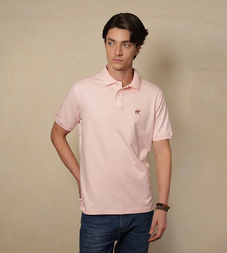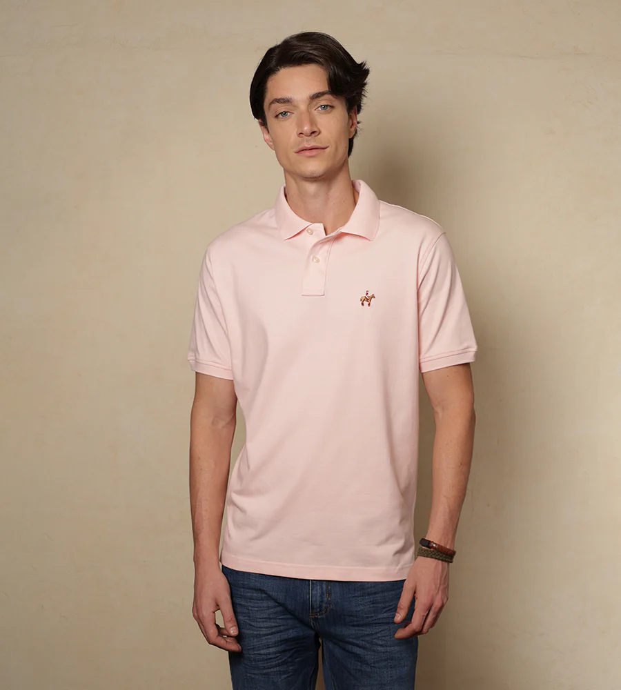 Camiseta tipo polo color rosado claro.