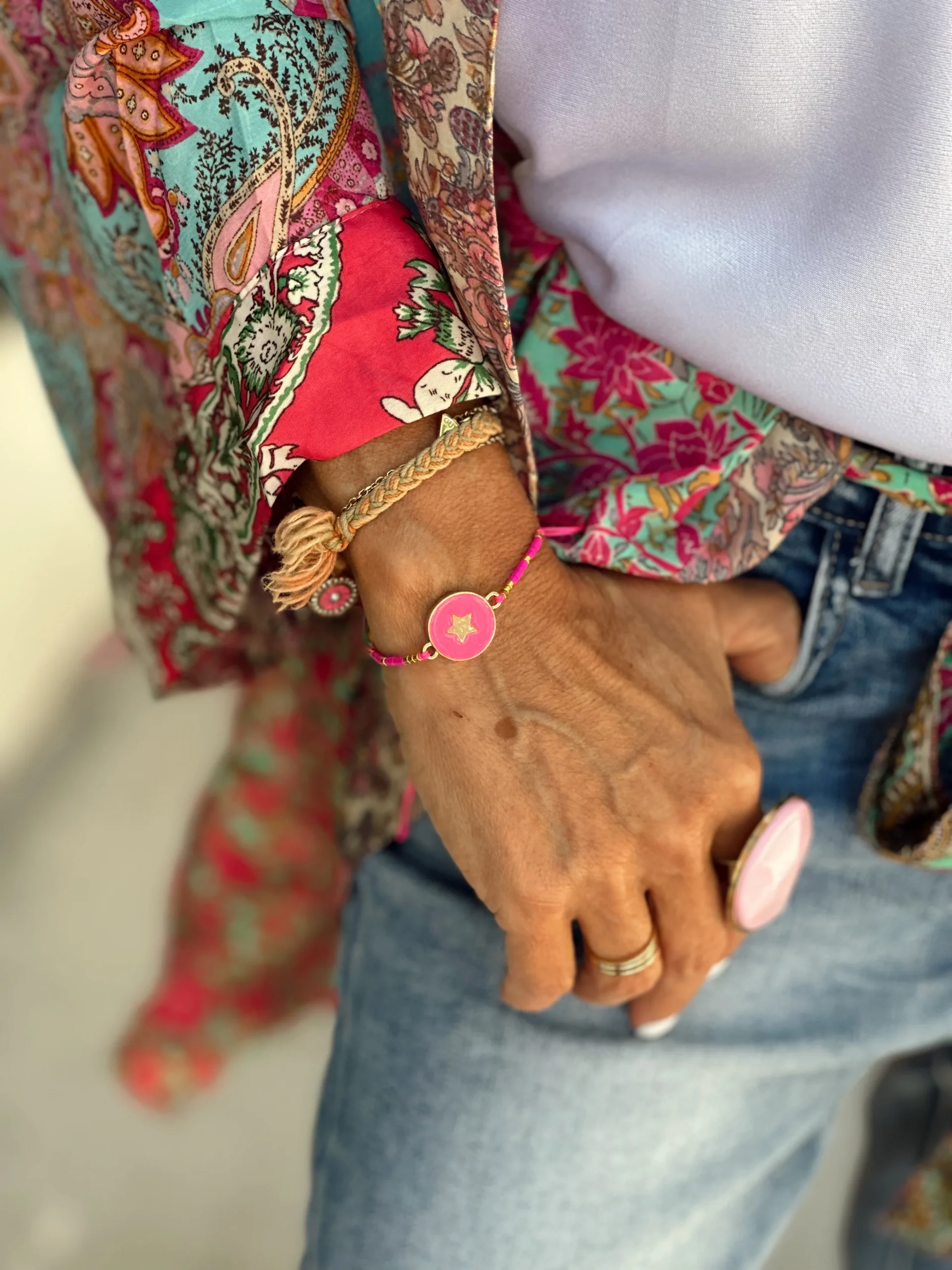 Estas pulseras ⭐️ son súper lindas y están disponibles en varios colores, perfectas para el verano. Fabricados en acero inoxidable, combinan durabilidad y estilo. Llévalos sin moderación y añade un toque de brillo a todos tus conjuntos de verano. ¡No pierdas esta oportunidad de brillar con estas adorables pulseras!✨