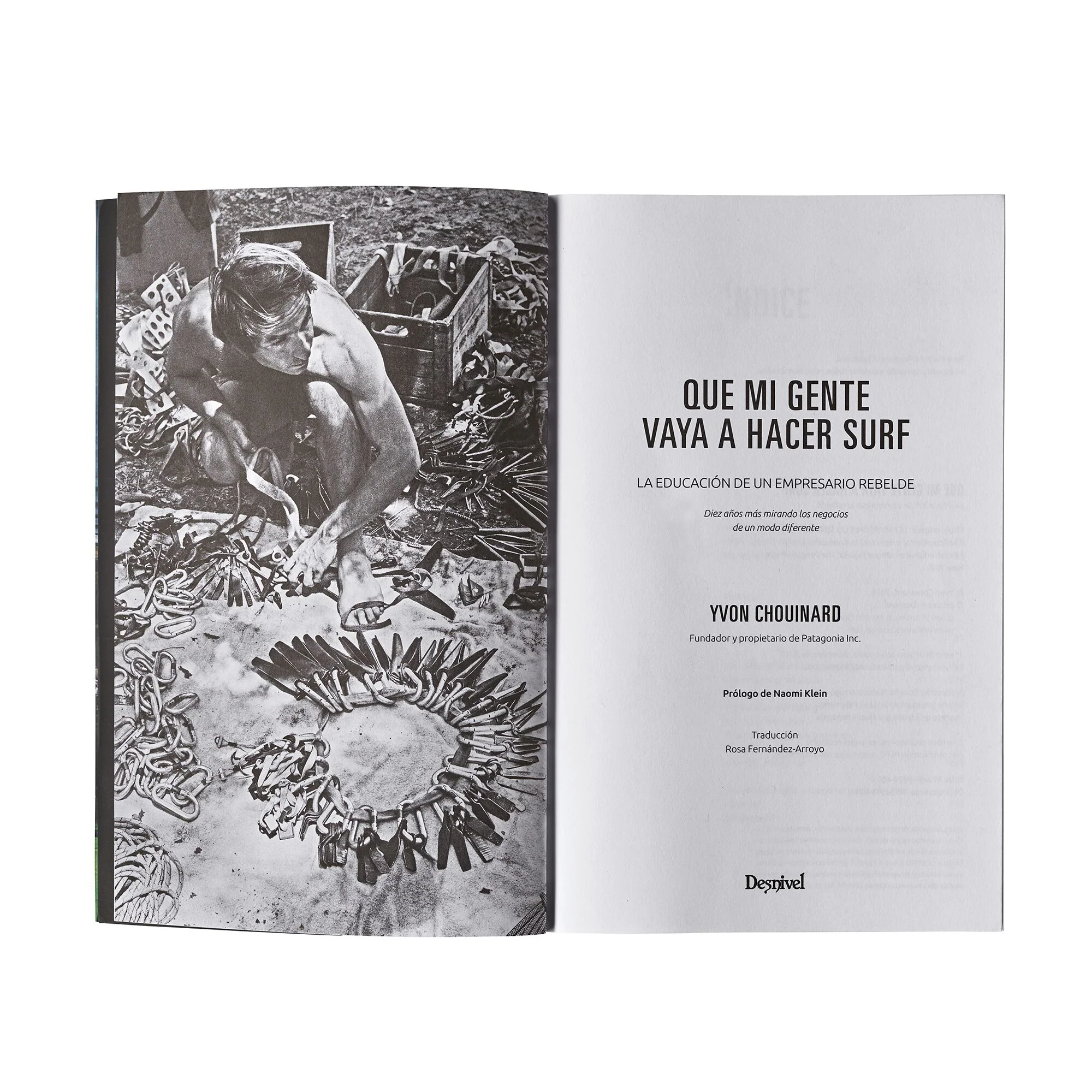 En parte, un relato y, en otra, un manifiesto. El legendario escalador, hombre de negocios y ecologista, Yvon Chouinard, fundador y propietario de Patagonia, Inc. describe su vida y sus comienzos en los negocios como escalador ambulante que vende cerrojos desde su autom贸vil. Que Mi Gente Vaya a Hacer Surf: La Educaci贸n de Un Empresario Rebelde ofrece una mirada de los principios de orientaci贸n que Chouinard utiliz贸 para convertir a Patagonia en un negocio global: un negocio con una misi贸n ecol贸gica y que es un lugar divertido para trabajar.