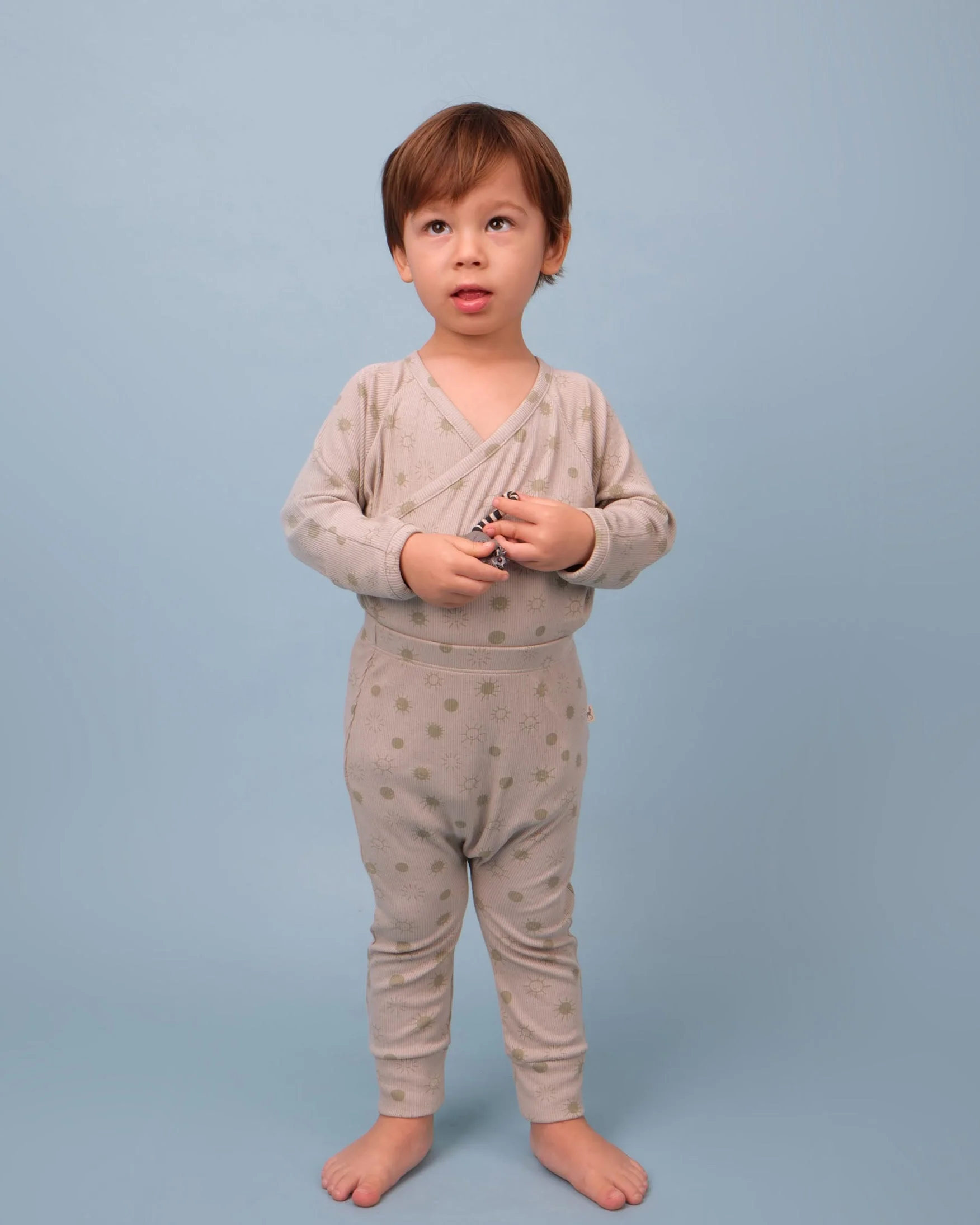 Mejora el confort y estilo de tu bebé con nuestro Conjunto Bebé – Body Kimono + Leggings. El kimono onesie se cierra como un kimono con broches cruzados y cuenta con fácil cambio de pañal gracias a los broches en la entrepierna. Además, incluye cubre manitos opcional en los puños para cubrir las manos. Ambas piezas están confeccionadas en tejido rib (que se estira), garantizando flexibilidad y confort. Ideal para uso diario, manteniendo a tu pequeño/a acogedor/a y con estilo.