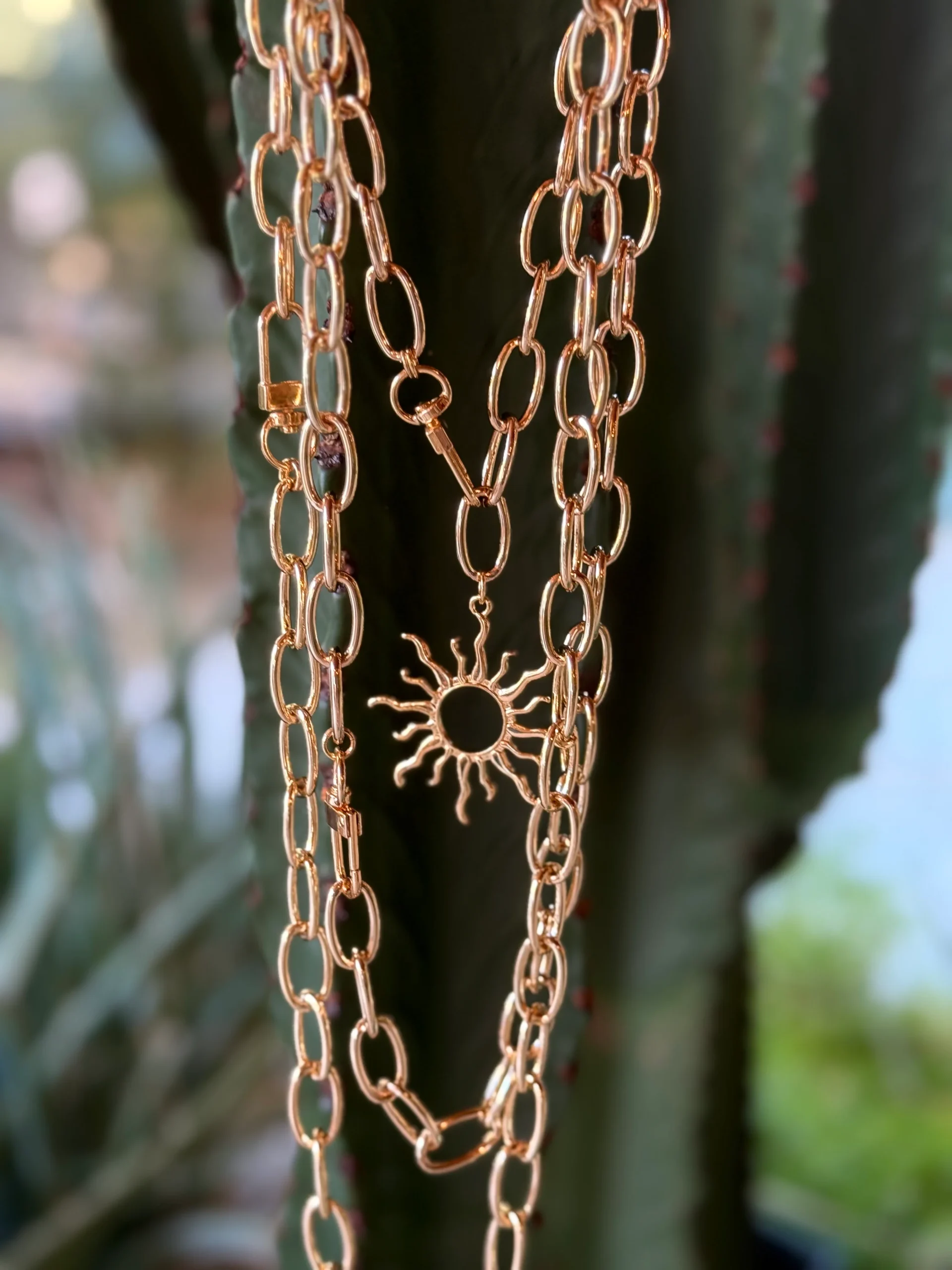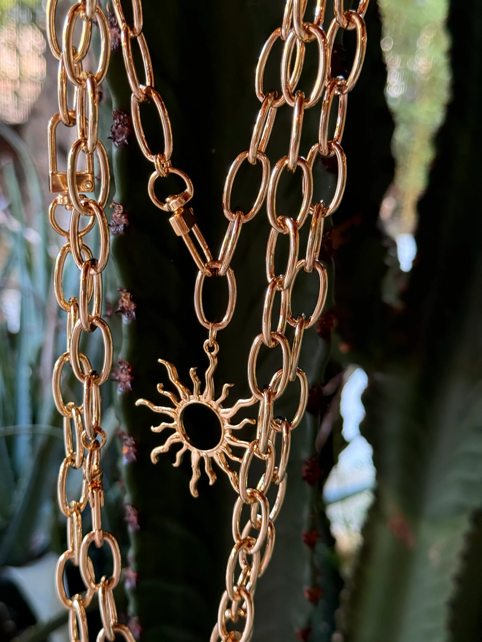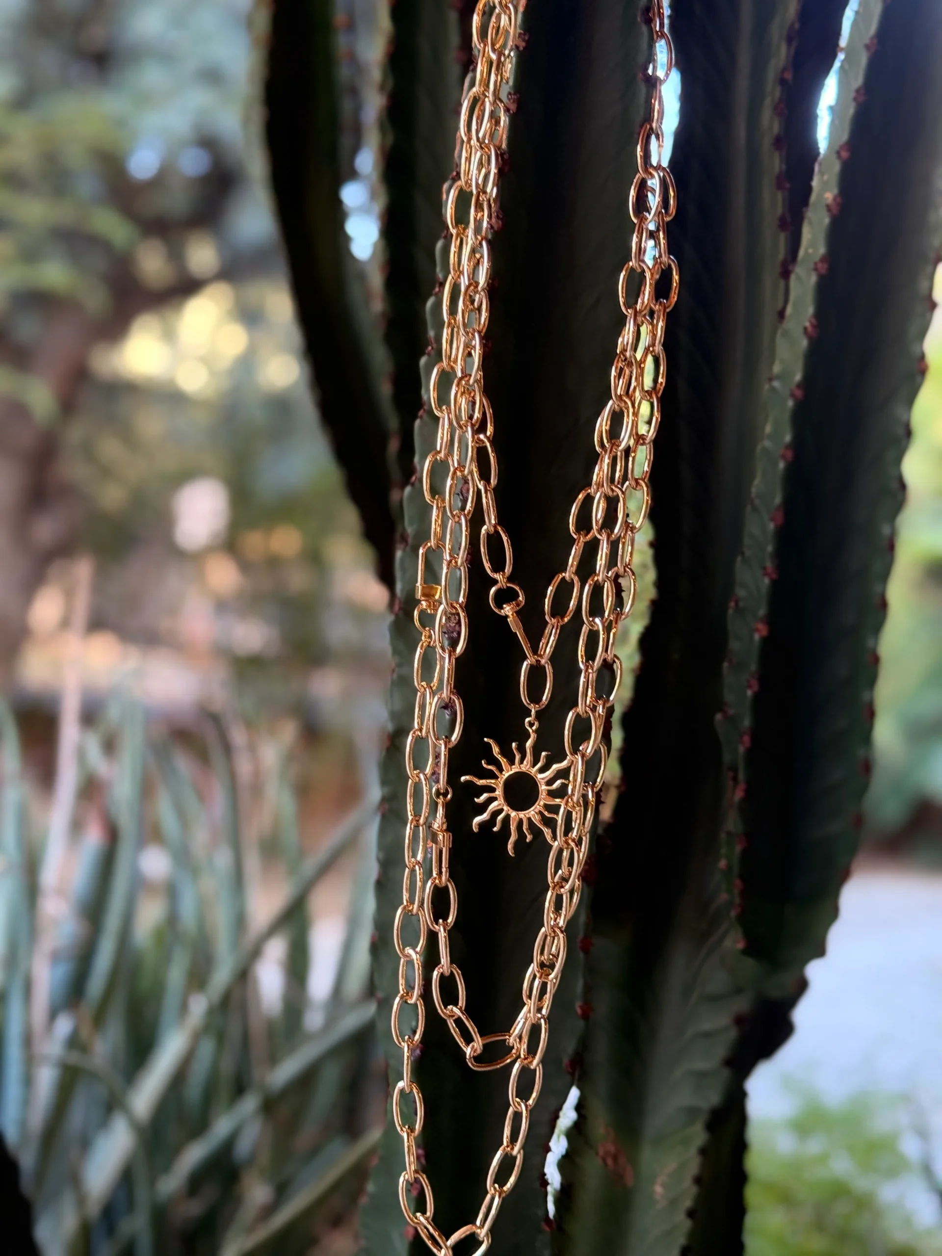 Un conjunto de tres collares con nuestro sol que me parece simplemente precioso. Puedes llevarlos juntos o por separado, como más te guste. ¡Hazlo a tu manera y crea tu propio estilo!