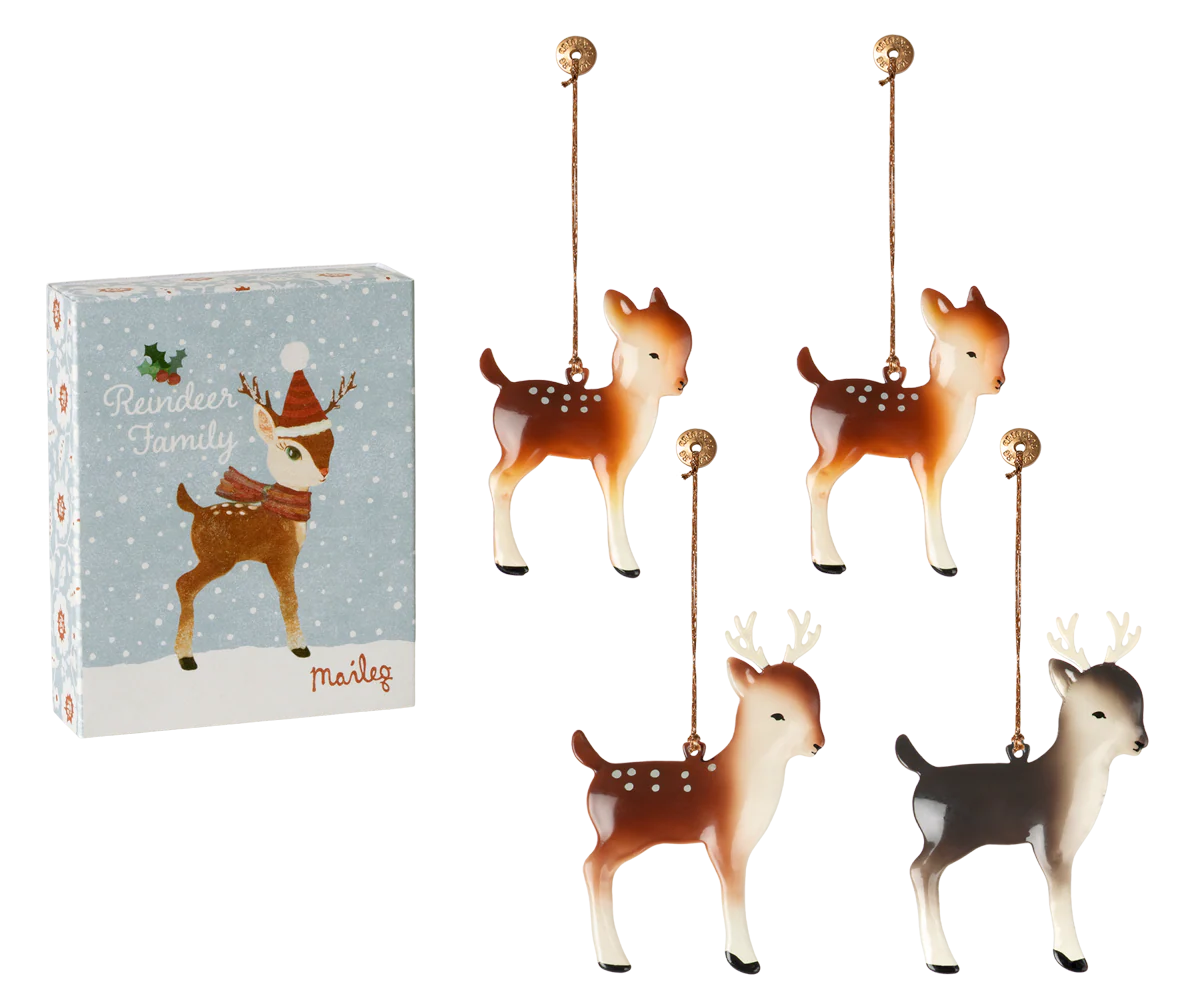 La familia reno en caja de regalo contiene cuatro elementos, mamá, papá y dos hermanitos.