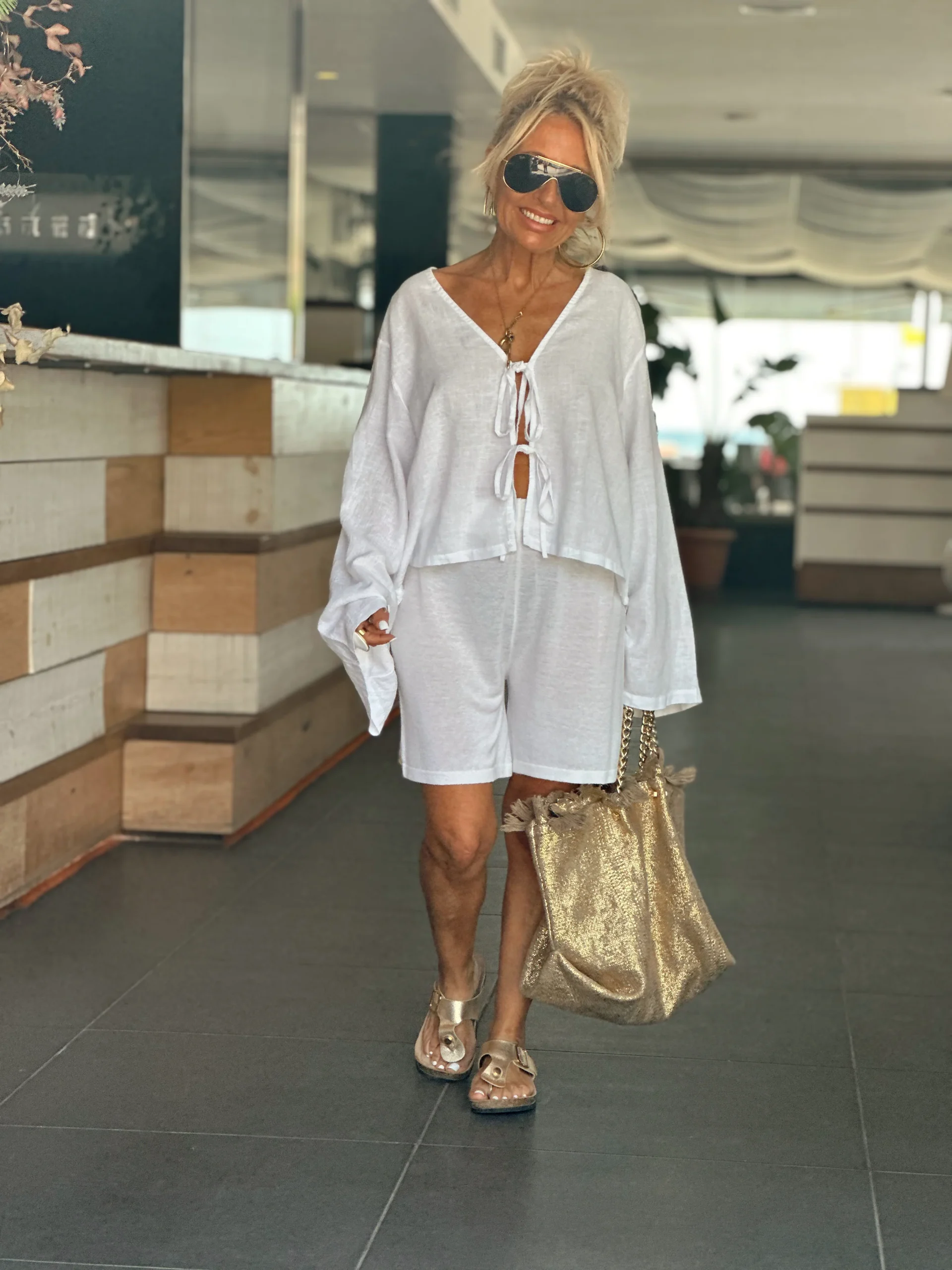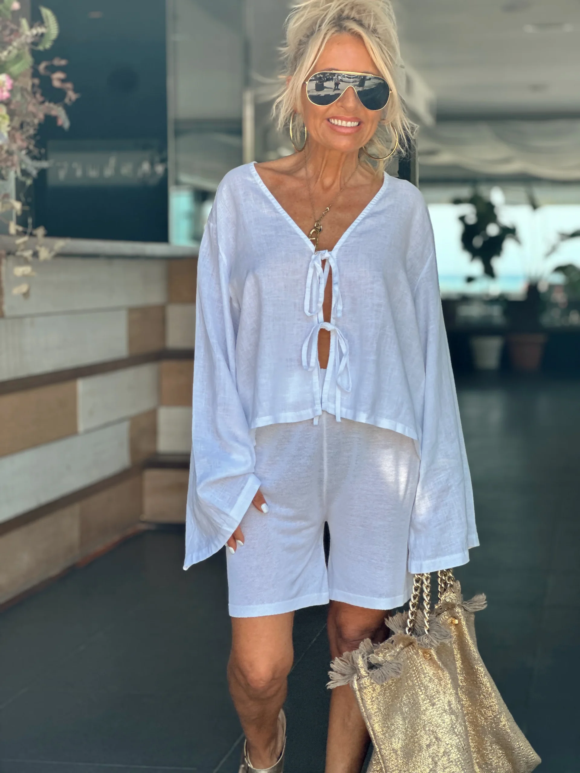 ¡Enamórate de estos shorts únicos y magnÃficos! Confeccionada con lino y viscosa, ofrece una comodidad excepcional. Los diseños de láminas doradas en la parte trasera añaden un toque de elegancia y originalidad. Haz de estos pantalones cortos tu prenda distintiva para lograr un estilo irresistible y distintivo.✨