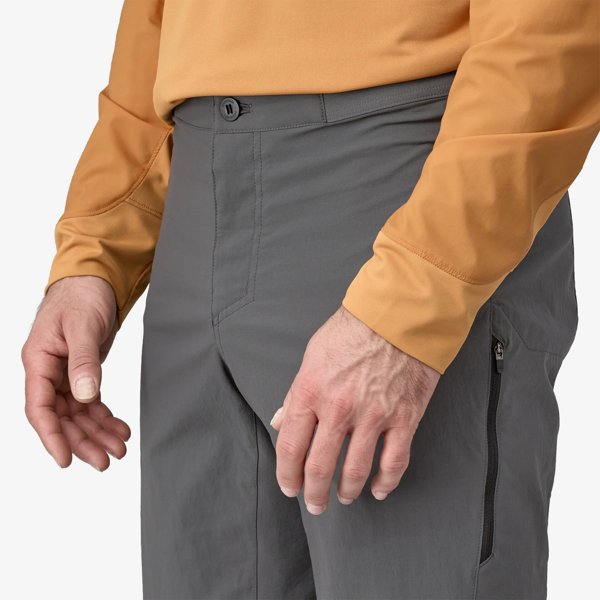 La pretina de bajo perfil con paneles elásticos y bragueta de cierre con botón minimizan las molestias y dobleces en la cintura para un calce sin rozaduras bajo cinturones de mochila.