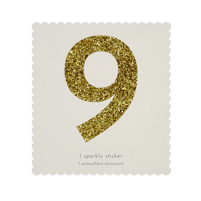 Sticker glitter oro número 9