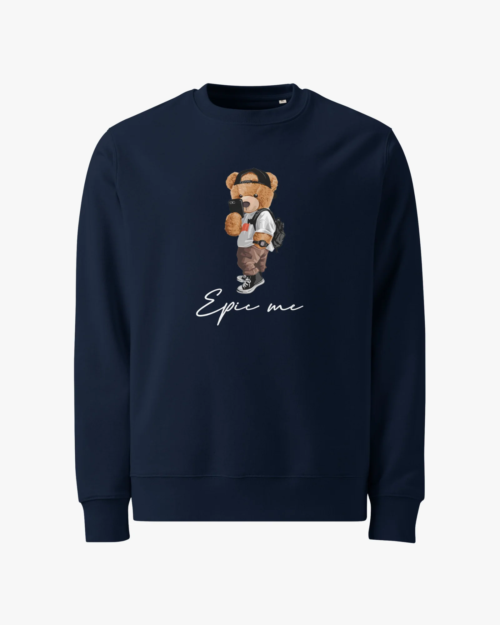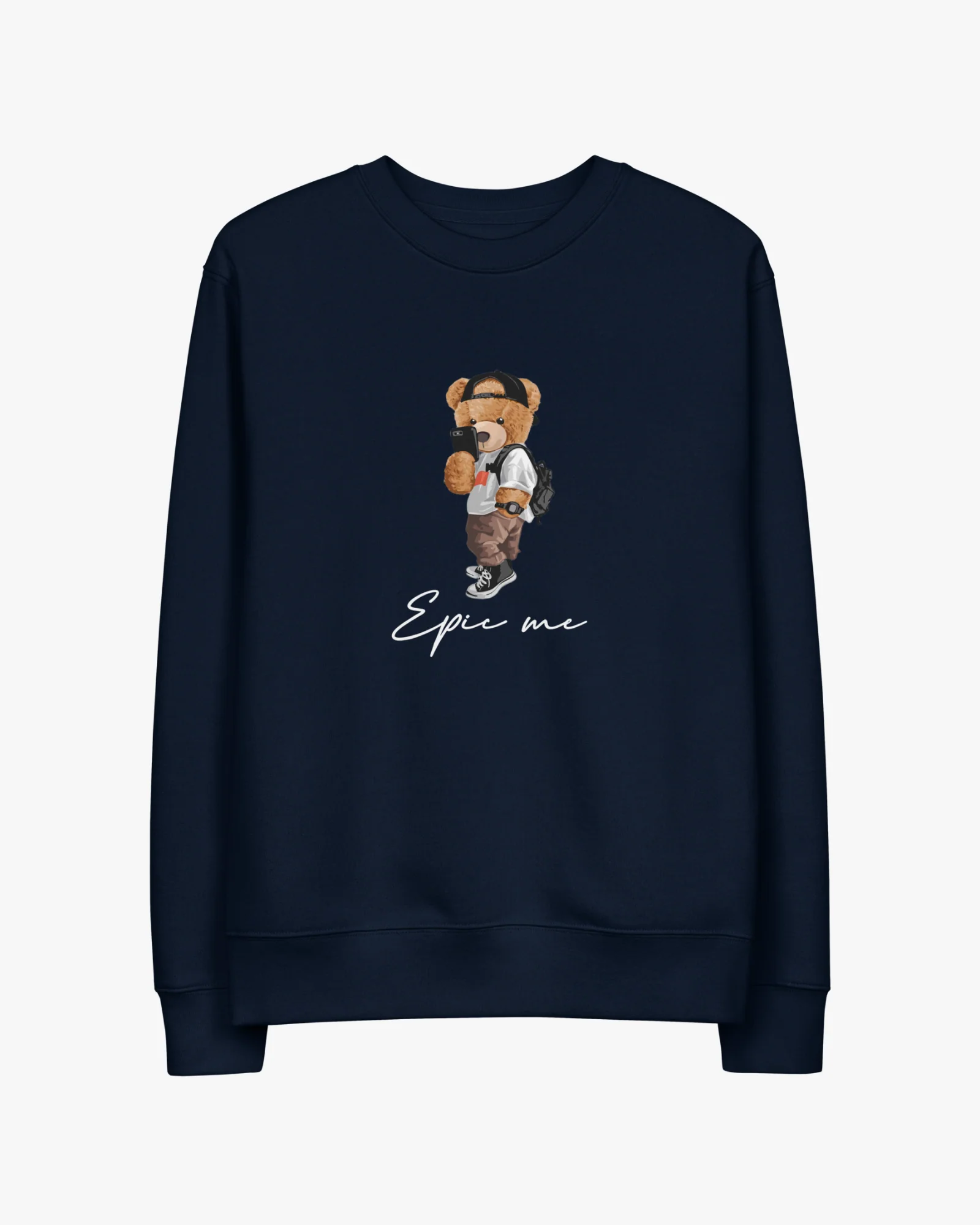 El oso del frontal lleva esa vibra tranquila que todos tenemos cuando el mundo deja de correr un momento. Y el “Epic Me” debajo le da el toque justo para que la prenda hable por ti sin exagerar.